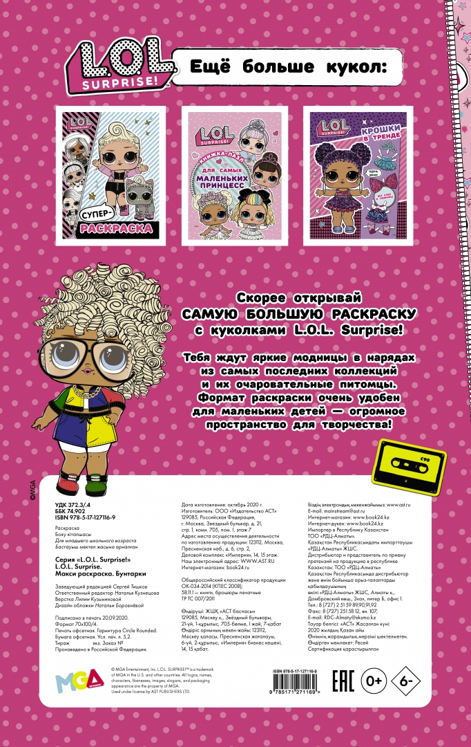 --L.O.L. Surprise. Макси раскраска. БунтаркиПлетем из резиночекВиммельбухи и находилкиТематические альбомы и ежедневникиПесенники. Организация праздниковРаскраски для детейОпыты, эксперименты, фокусыМастерим своими рукамиРазвивающие и активные игры для детейГоловоломки, игры, заданияБумажные куклыРисование для детейОригамиКонструирование из бумагиАппликацииАльбомы с наклейкамиЛепим из пластилина