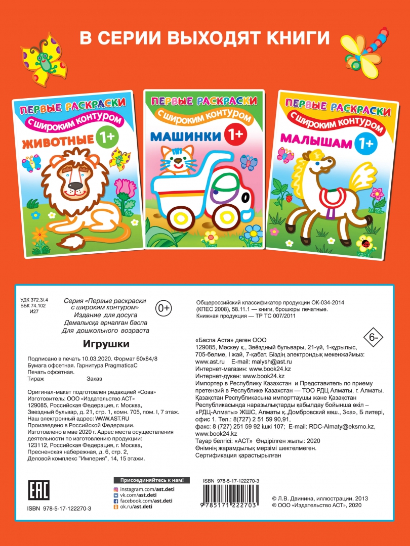 --Игрушки. 1+. Самые первые раскраски с широким контуромПлетем из резиночекВиммельбухи и находилкиТематические альбомы и ежедневникиПесенники. Организация праздниковРаскраски для детейОпыты, эксперименты, фокусыМастерим своими рукамиРазвивающие и активные игры для детейГоловоломки, игры, заданияБумажные куклыРисование для детейОригамиКонструирование из бумагиАппликацииАльбомы с наклейкамиЛепим из пластилина