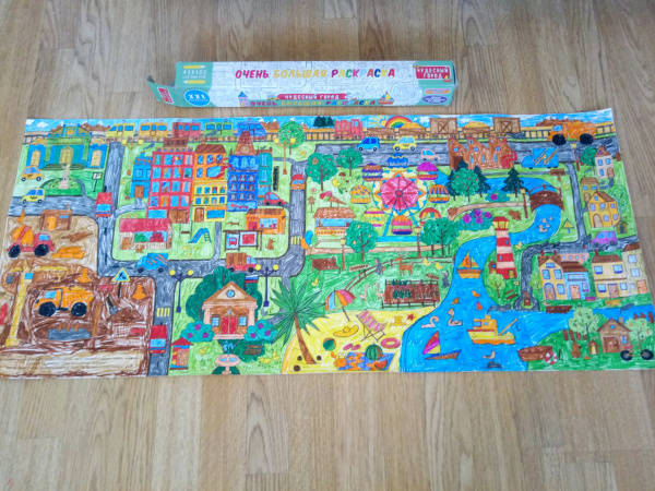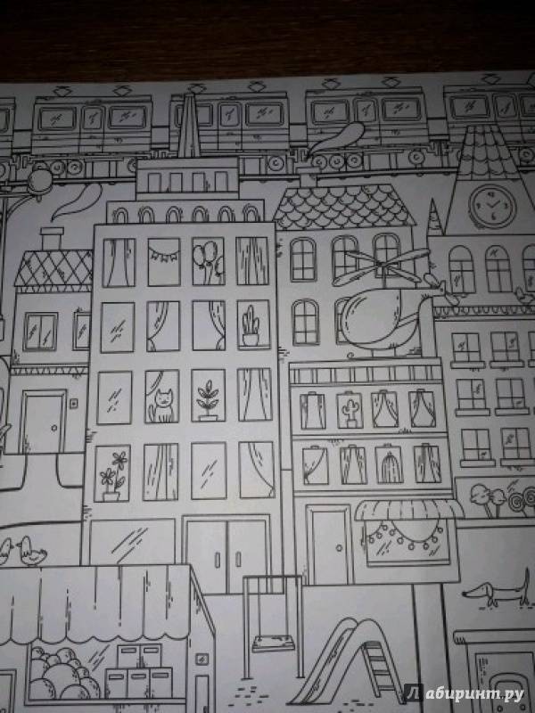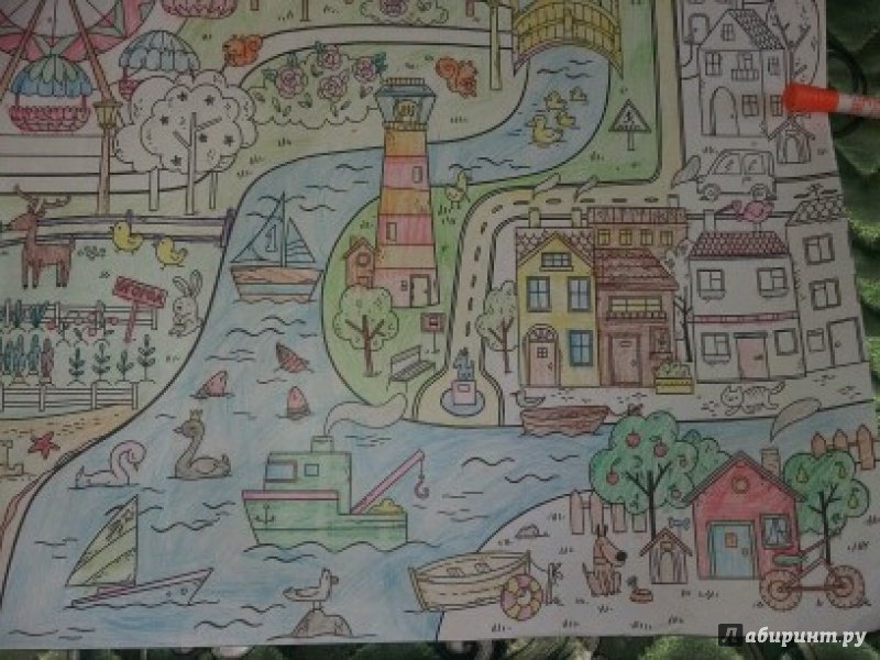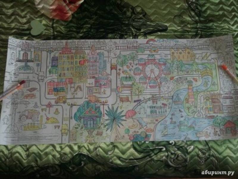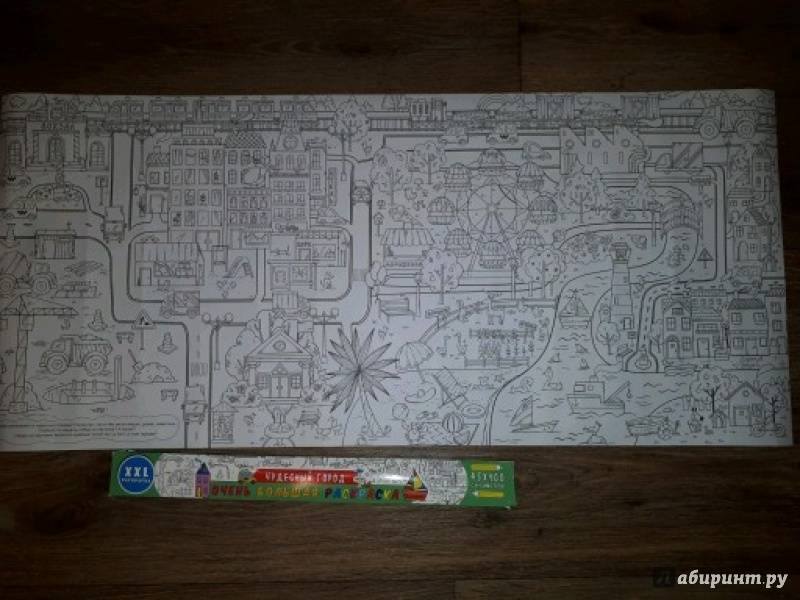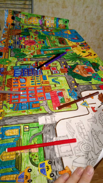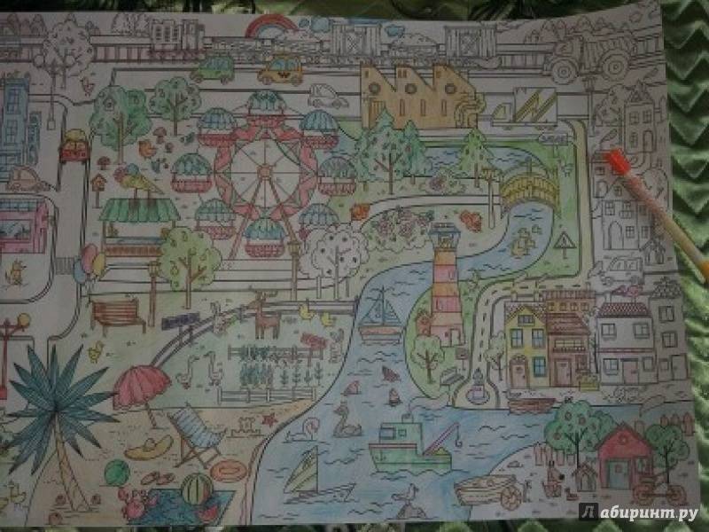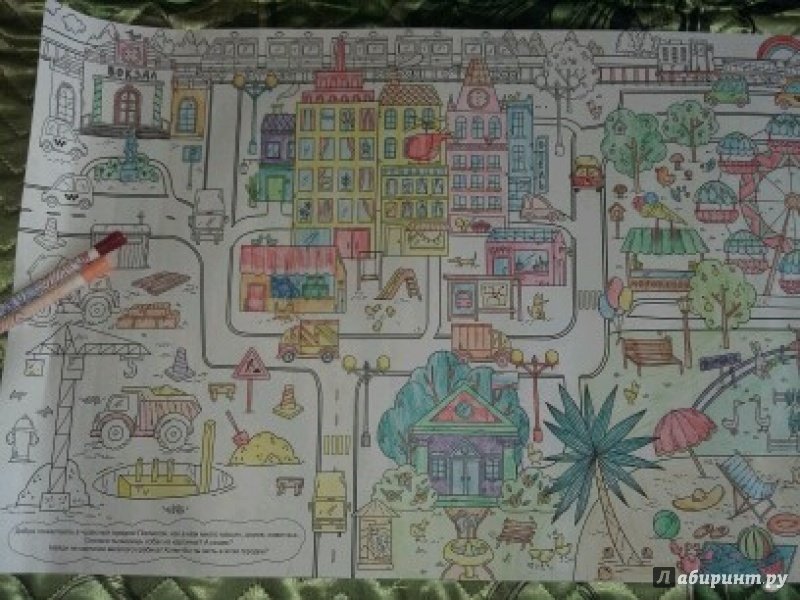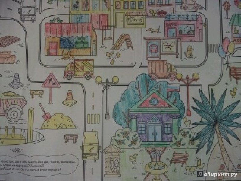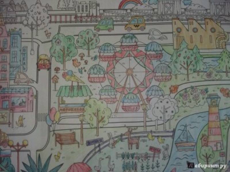 ОписаниеЭта раскраска-плакат станет отличным развлечением для всей семьи: её могут раскрашивать одновременно несколько человек! На ней изображены разные сценки из жизни города, по которым можно придумывать собственные истории, что превратит раскрашивание в увлекательную игру. Когда картинка будет полностью раскрашена, можно повесить её на стену и любоваться своим творением! Для младшего школьного возраста.Эта раскраска-плакат станет отличным развлечением для всей семьи: её могут раскрашивать одновременно несколько человек! На ней изображены разные сценки из жизни города, по которым можно придумывать собственные истории, что превратит раскрашивание в увлекательную игру. Когда картинка будет полностью раскрашена, можно повесить её на стену и любоваться своим творением! Для младшего школьного возраста.