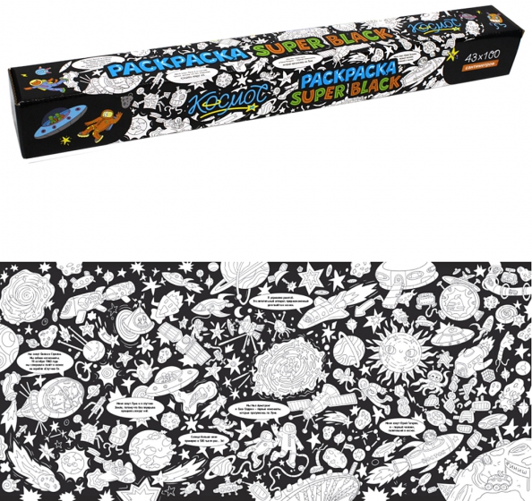 ОписаниеЭта раскраска-плакат вам точно понравится! Благодаря большому формату вы легко сможете раскрашивать её всей семьёй, а на чёрном фоне все рисунки будут выглядеть ещё ярче и интереснее! И совсем не страшно, если где-то вы вышли за края рисунка - этого не будет видно! Кроме того, внутри вы найдёте множество интересных фактов о планетах, звёздах и людях, покоривших космическое пространство. А некоторые фразы точно заставят вас улыбнуться. Что может быть лучше, чем познавать новое, развлекаясь? Когда закончите своё творение, можете повесить на стену и любоваться!Формат раскраски: 100х430 мм.Материалы: картон, офсетная бумага.Для чтения взрослыми детям.Эта раскраска-плакат вам точно понравится! Благодаря большому формату вы легко сможете раскрашивать её всей семьёй, а на чёрном фоне все рисунки будут выглядеть ещё ярче и интереснее! И совсем не страшно, если где-то вы вышли за края рисунка - этого не будет видно! Кроме того, внутри вы найдёте множество интересных фактов о планетах, звёздах и людях, покоривших космическое пространство. А некоторые фразы точно заставят вас улыбнуться. Что может быть лучше, чем познавать новое, развлекаясь? Когда закончите своё творение, можете повесить на стену и любоваться!Формат раскраски: 100х430 мм.Материалы: картон, офсетная бумага.Для чтения взрослыми детям.