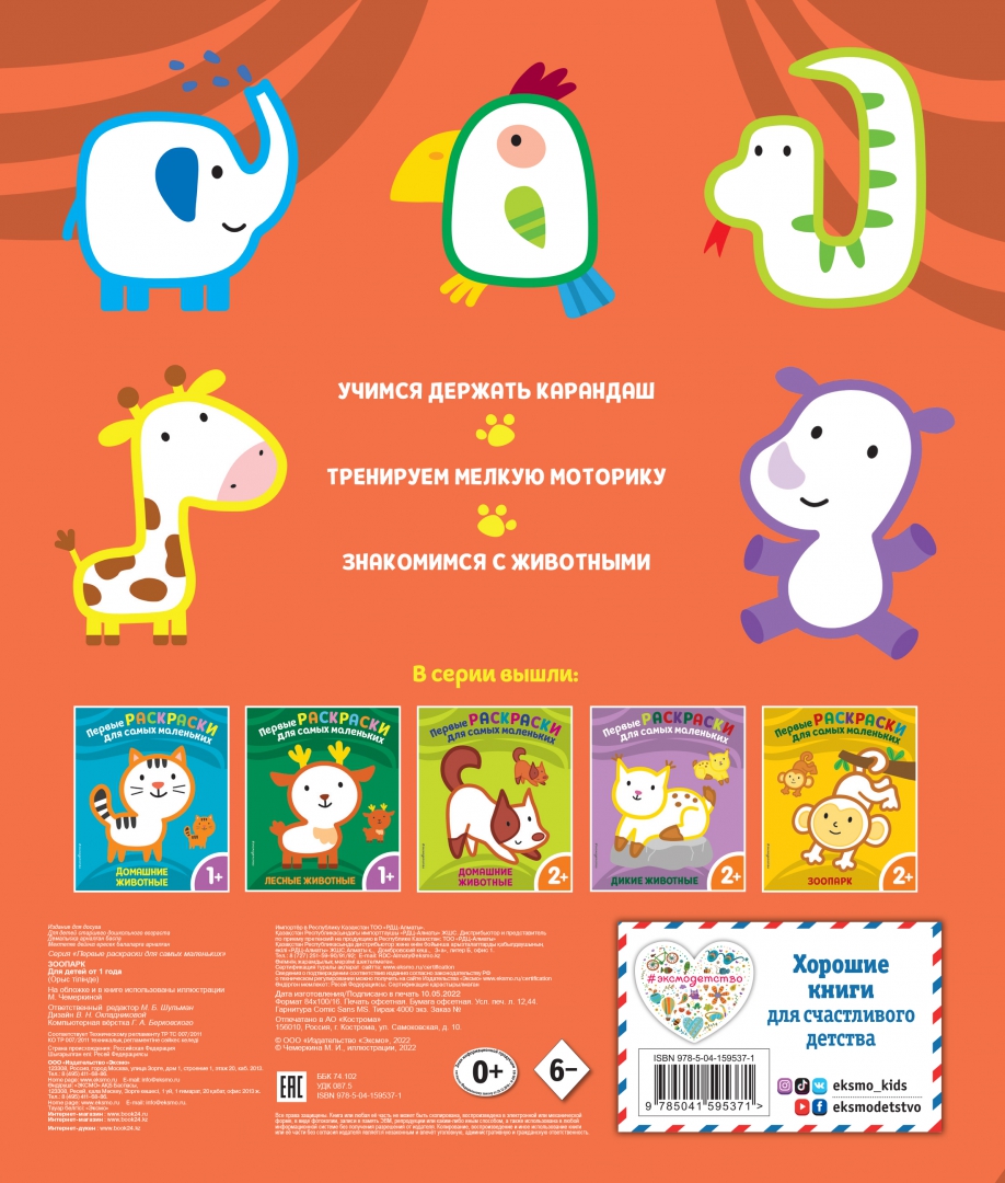 Объем, стр. 12 ISBN 978-5-04-159537-1 Автор Чемеркина Мария Художник Чемеркина Мария Серия Первые раскраски для самых маленьких Год издания книги 2022 Тип обложки Мягкий переплет Иллюстрации Цветные Вес, г 48г Размеры 220х185х2 мм - Отзывы