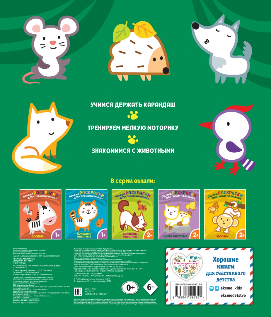 Объем, стр. 12 ISBN 978-5-04-159535-7 Автор Чемеркина Мария Художник Чемеркина Мария Серия Первые раскраски для самых маленьких Год издания книги 2022 Тип обложки Мягкий переплет Иллюстрации Цветные Вес, г 46г Размеры 235х185х2 мм - Отзывы