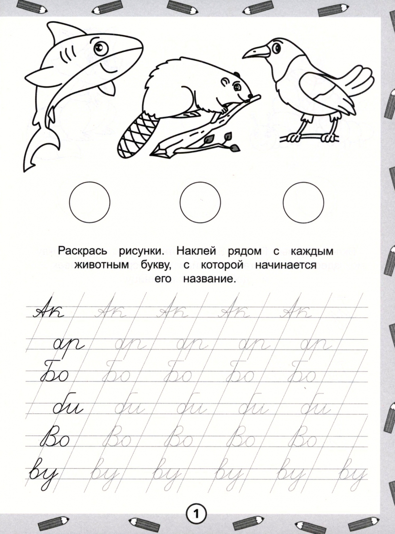 ОписаниеОбучающая раскраска-пропись превратит уроки письма в увлекательное занятие, ведь в книге нужно не только штриховать, обводить узоры, фигуры, буквы и цифры, но и раскрашивать весёлые картинки. В дополнение к раскраске идут яркие наклейки.Обучающая раскраска-пропись превратит уроки письма в увлекательное занятие, ведь в книге нужно не только штриховать, обводить узоры, фигуры, буквы и цифры, но и раскрашивать весёлые картинки. В дополнение к раскраске идут яркие наклейки.