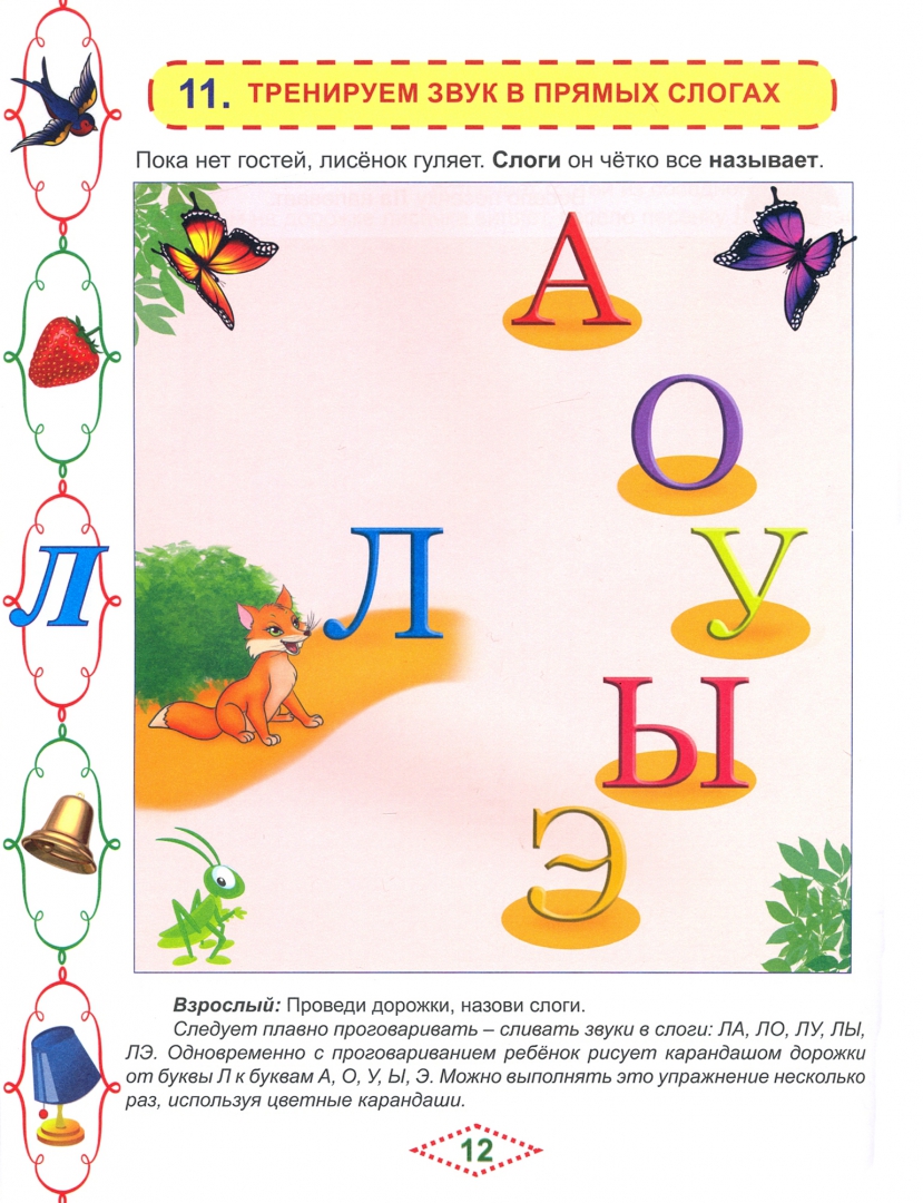 ОписаниеДанное пособие предназначено для индивидуальной работы с детьми 3-5 лет по формированию правильного произношения звука "Л".Эта книга поможет родителям организовать логопедические занятия с ребёнком дома, а логопеды могут использовать её на занятиях в образовательной организации. В книге три сказки-раскраски в стихах с различными заданиями, которые направлены на постановку и первичную автоматизацию звука "Л" у детей 3-5 лет. Задания построены в интерактивной форме, когда ребёнок принимает непосредственное участие в действиях сказочных персонажей и традиционные (чаще всего скучные) логопедические занятия превращаются для ребёнка в интересную игру с героями сказочных историй.Материал содержит следующие виды заданий: артикуляционную гимнастику; специальные упражнения на постановку изолированного звука; упражнения на формирование речевого дыхания; пальчиковую гимнастику; комплексные упражнения; упражнения, направленные на автоматизацию изолированного звука и звука в открытых слогах. Так как важным аспектом логопедических занятий является рисование, в книге дано большое количество упражнений-раскрасок, которые параллельно с автоматизацией звука помогают формированию у детей мелкой моторики пальцев, активизации памяти, внимания и мышления.Книга адресована родителям детей с нарушениями речи, логопедам, воспитателям логопедических групп.СвернутьДанное пособие предназначено для индивидуальной работы с детьми 3-5 лет по формированию правильного произношения звука "Л".Эта книга поможет родителям организовать логопедические занятия с ребёнком дома, а логопеды могут использовать её на занятиях в образовательной организации. В книге три сказки-раскраски в стихах с различными заданиями, которые направлены на постановку и первичную автоматизацию звука "Л" у детей 3-5 лет. Задания построены в интерактивной форме, когда ребёнок принимает непосредственное участие в действиях сказочных персонажей и традиционные (чаще всего скучные) логопедические занятия превращаются для ребёнка в интересную игру с героями сказочных историй.Материал содержит следующие виды заданий: артикуляционную гимнастику; специальные упражнения на постановку изолированного звука; упражнения на формирование речевого дыхания; пальчиковую гимнастику; комплексные упражнения; упражнения, направленные на автоматизацию изолированного звука и звука в открытых слогах. Так как важным аспектом логопедических занятий является рисование, в книге дано большое количество упражнений-раскрасок, которые параллельно с автоматизацией звука помогают формированию у детей мелкой моторики пальцев, активизации памяти, внимания и мышления.Книга адресована родителям детей с нарушениями речи, логопедам, воспитателям логопедических групп.СвернутьСвернуть