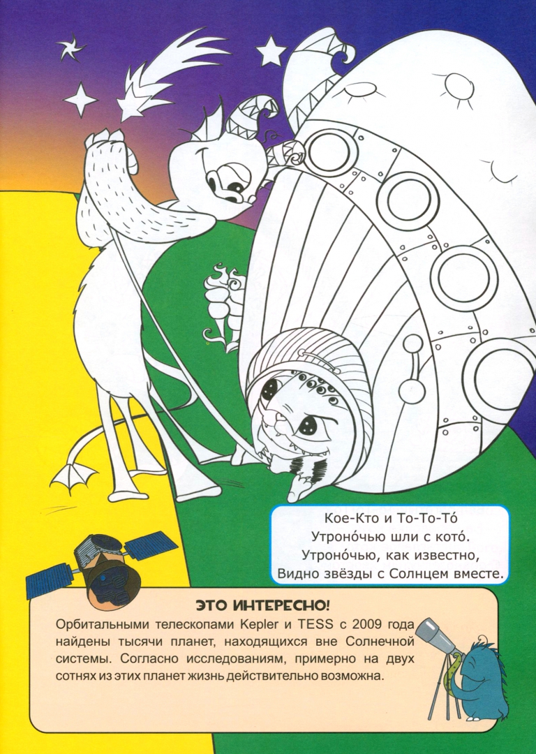 ОписаниеКосмос - самое удивительное, необъятное и загадочное из того, что только можно вообразить себе во всём-всём Мире! Представьте, что далеко-далеко есть чудесная и необыкновенная галактика Нигде, в ней живут самые весёлые инопланетяне Вселенной Кое-Кто и То-То-То. Они путешествуют, играют, ходят в межпланетный зоопарк, в гости к друзьям из соседних галактик, встречают космический Новый год, радуются вездеходным звездососам и просто обожают получать на праздники ярко-круглое Ничего! Возможно? Конечно, возможно! Об этом узнаете в необычной книге и поверите в чудо!ВЫ ПРОЧТЁТЕ:- 5 фантастических приключений забавных инопланетян;- 30 научных фактов о космосе, точность которых подтверждена сотрудниками Большого Новосибирского Планетария.СОЗДАДИТЕ свою красочную галактику Нигде, раскрасив 32 картинки неповторимого инопланетного мира.Удивляйтесь всему новому и смело разгадывайте тайны!За помощь в подготовке и проверке научных фактов автор благодарит сотрудников Большого Новосибирского Планетария.СвернутьКосмос - самое удивительное, необъятное и загадочное из того, что только можно вообразить себе во всём-всём Мире! Представьте, что далеко-далеко есть чудесная и необыкновенная галактика Нигде, в ней живут самые весёлые инопланетяне Вселенной Кое-Кто и То-То-То. Они путешествуют, играют, ходят в межпланетный зоопарк, в гости к друзьям из соседних галактик, встречают космический Новый год, радуются вездеходным звездососам и просто обожают получать на праздники ярко-круглое Ничего! Возможно? Конечно, возможно! Об этом узнаете в необычной книге и поверите в чудо!ВЫ ПРОЧТЁТЕ:- 5 фантастических приключений забавных инопланетян;- 30 научных фактов о космосе, точность которых подтверждена сотрудниками Большого Новосибирского Планетария.СОЗДАДИТЕ свою красочную галактику Нигде, раскрасив 32 картинки неповторимого инопланетного мира.Удивляйтесь всему новому и смело разгадывайте тайны!За помощь в подготовке и проверке научных фактов автор благодарит сотрудников Большого Новосибирского Планетария.СвернутьСвернуть
