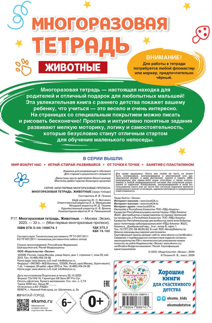 ISBN 978-5-04-168674-1 Серия Мои первые многоразовые прописи Год издания книги 2023 - Отзывы