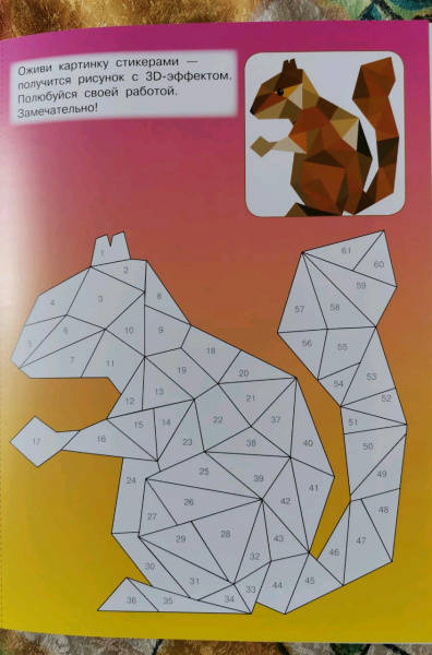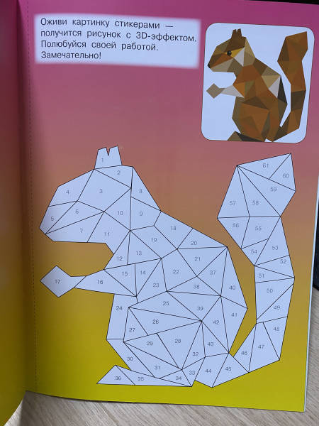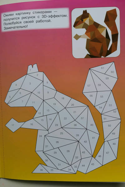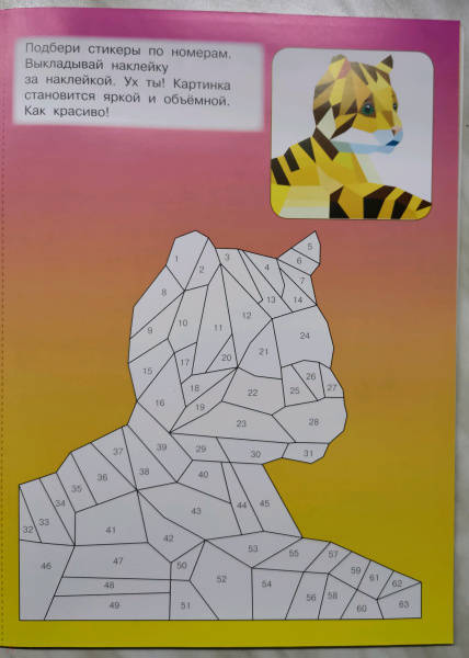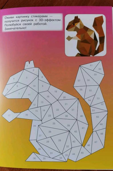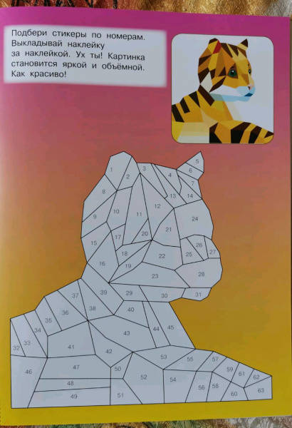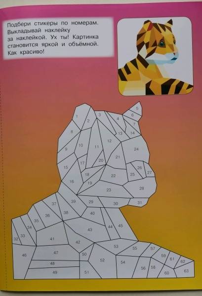 В уникальной книжке ребята увидят животных, которых можно раскрасить стикерами, подобрав наклейки по номерам. Юным художникам обязательно понравятся интересные задания на развитие логики, памяти, внимания, мелкой моторики.