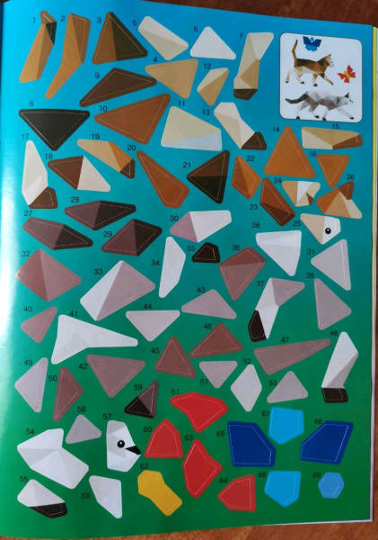 • Выкладывая наклейку за наклейкой, ребенок постепенно видит, как появляется яркая картинка из кусочков мозаики, учится воспринимать связь между целой картинкой и ее частями.