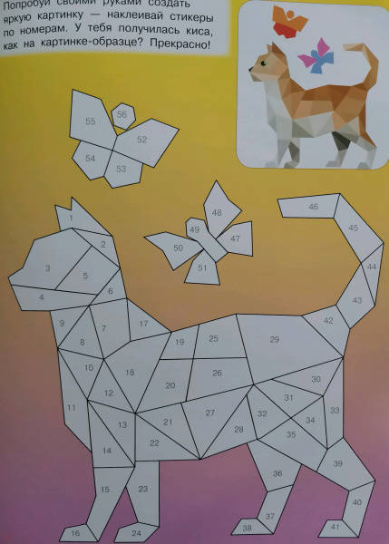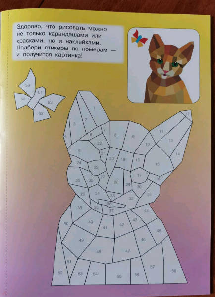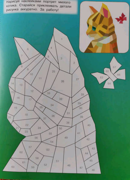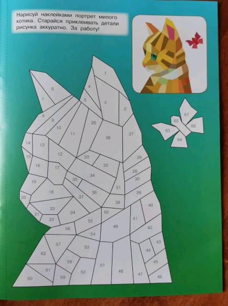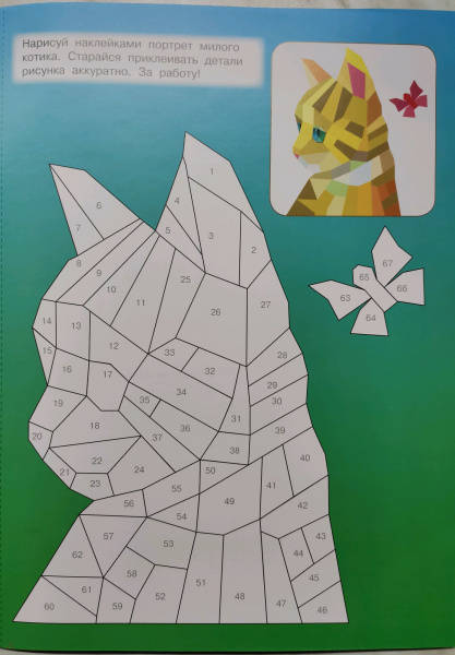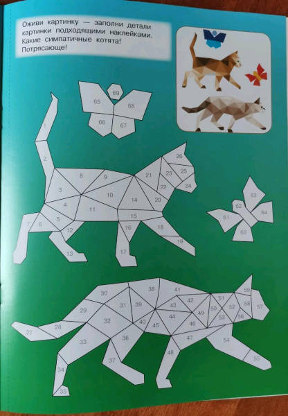 Свернуть"Котята и кошки" — самая настоящая волшебная книжка для юных художников. Это красочные иллюстрации + более 250 геометрических стикеров. Ребята узнают, что рисовать можно не только карандашами, фломастерами или красками, но и наклейками. Получаются картинки с 3D-эффектом! Достаточно подобрать наклейки по номерам. Ребёнок удивится и обрадуется, когда котята и кошки на страницах станут красочными и объёмными. Юным художникам обязательно понравятся интересные задания на развитие логики, памяти, внимания, мелкой моторики.Для дошкольного и младшего школьного возраста.В уникальной книжке ребята увидят пушистых домашних любимцев, которых можно раскрасить стикерами, подобрав наклейки по номерам. Юным художникам обязательно понравятся интересные задания на развитие логики, памяти, внимания, мелкой моторики.