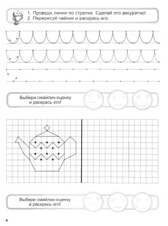 Описание«Школа гениальных малышей» - это не просто развивающие прописи для детей дошкольного возраста. Это забавная игра, вдохновляющая на достижение отличных результатов, и самый увлекательный способ: - выучить буквы и цифры, - освоить аккуратное чистописание, - научиться рисовать! В чем идея серии: Известно, что хорошие оценки – один из лучших мотивирующих факторов, который помогает ребенку сконцентрироваться и достичь успеха. В «Школе гениальных малышей» дети тоже получают оценки, причем только хорошие! Выполняя различные задания, кроха должен показать знания, проявить точность, сообразительность и аккуратность. Что-то получится хорошо, а что-то еще лучше – в любом случае, он заслужит оценки-смайлики, которые вдохновят его на дальнейшие успехи! Что интересного в этой книжке для малыша: Рисовать – и правда – легко! Нужно только знать, в каком направлении двигать карандашом. Волшебные точки и черточки подскажут крохе, как простыми движениями создать забавный рисунок. Да, задания в этой книжке – лишь пример, и взяв его на вооружение, ребенок сможет нарисовать что угодно! Чем полезна игра с этой книжкой: С помощью заданий из книжки «Рисовать легко: по клеточкам и точкам» ваш ребенок познакомится на практике с понятиями размера, форм, масштаба и симметрии. Чтобы их выполнить, ему придется проявить внимательность и аккуратность. Так он научится замечать детали предметов в окружающем его мире и фиксировать их на бумаге. Даже если кроха допустит ошибку, он сможет вычислить, где и в чем допустил оплошность, и исправить ее!Оценить работу малыша предстоит маме, папе или воспитателю. Это отличный повод для приятного и творческого совместного времяпрепровождения! А кроме того, выбирая оценку-смайлик вместе с крохой, вы научите его обращать внимание на аккуратность и правильность выполнения своей работы. Рекомендации по возрасту «Школа гениальных малышей» ориентирована на детей от 3 до 7 лет. Книжки этой серии помогут ребенку отвлечься от мультиков и электронных игрушек и провести время весело и с пользой. А воспитатели в детских садах и развивающих центрах оценят разнообразие заданий, которые можно предложить на занятиях целой группе или в индивидуальной работе с ребенком.Свернуть«Школа гениальных малышей» - это не просто развивающие прописи для детей дошкольного возраста. Это забавная игра, вдохновляющая на достижение отличных результатов, и самый увлекательный способ: - выучить буквы и цифры, - освоить аккуратное чистописание, - научиться рисовать! В чем идея серии: Известно, что хорошие оценки – один из лучших мотивирующих факторов, который помогает ребенку сконцентрироваться и достичь успеха. В «Школе гениальных малышей» дети тоже получают оценки, причем только хорошие! Выполняя различные задания, кроха должен показать знания, проявить точность, сообразительность и аккуратность. Что-то получится хорошо, а что-то еще лучше – в любом случае, он заслужит оценки-смайлики, которые вдохновят его на дальнейшие успехи! Что интересного в этой книжке для малыша: Рисовать – и правда – легко! Нужно только знать, в каком направлении двигать карандашом. Волшебные точки и черточки подскажут крохе, как простыми движениями создать забавный рисунок. Да, задания в этой книжке – лишь пример, и взяв его на вооружение, ребенок сможет нарисовать