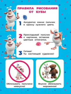 ОписаниеА ты знаешь, что рисовать можно не только кисточками и карандашами? В этой книжке Буба научит тебя рисовать с помощью пальчиков. Скорее бери свои любимые краски, пришло время для новых приключений!Для младшего школьного возраста.Посмотри, как виртуозно Буба играет на рояле! Даже нотки не удержались и начали танцевать! Присоединяйся и ты! Макай пальчики и закрашивай белые кружочки на картинках кляксами нужного цвета.