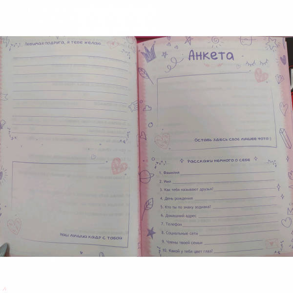 -Анкета для друзей ДРУЖЕЛЮБНЫЕ ЩЕНКИ (53524)Плетем из резиночекВиммельбухи и находилкиПесенники. Организация праздниковРаскраски для детейОпыты, эксперименты, фокусыМастерим своими рукамиРазвивающие и активные игры для детейГоловоломки, игры, заданияБумажные куклыРисование для детейОригамиКонструирование из бумагиАппликацииАльбомы с наклейкамиЛепим из пластилина