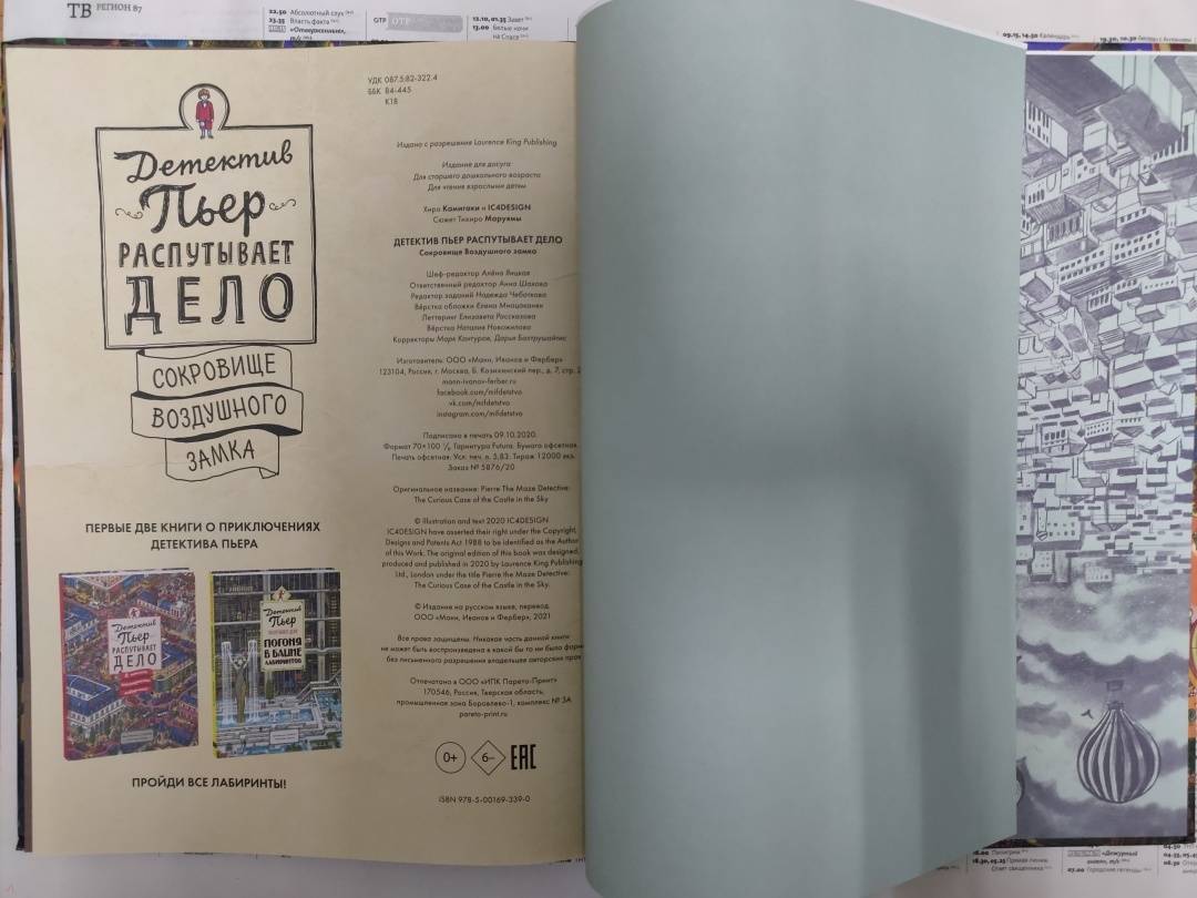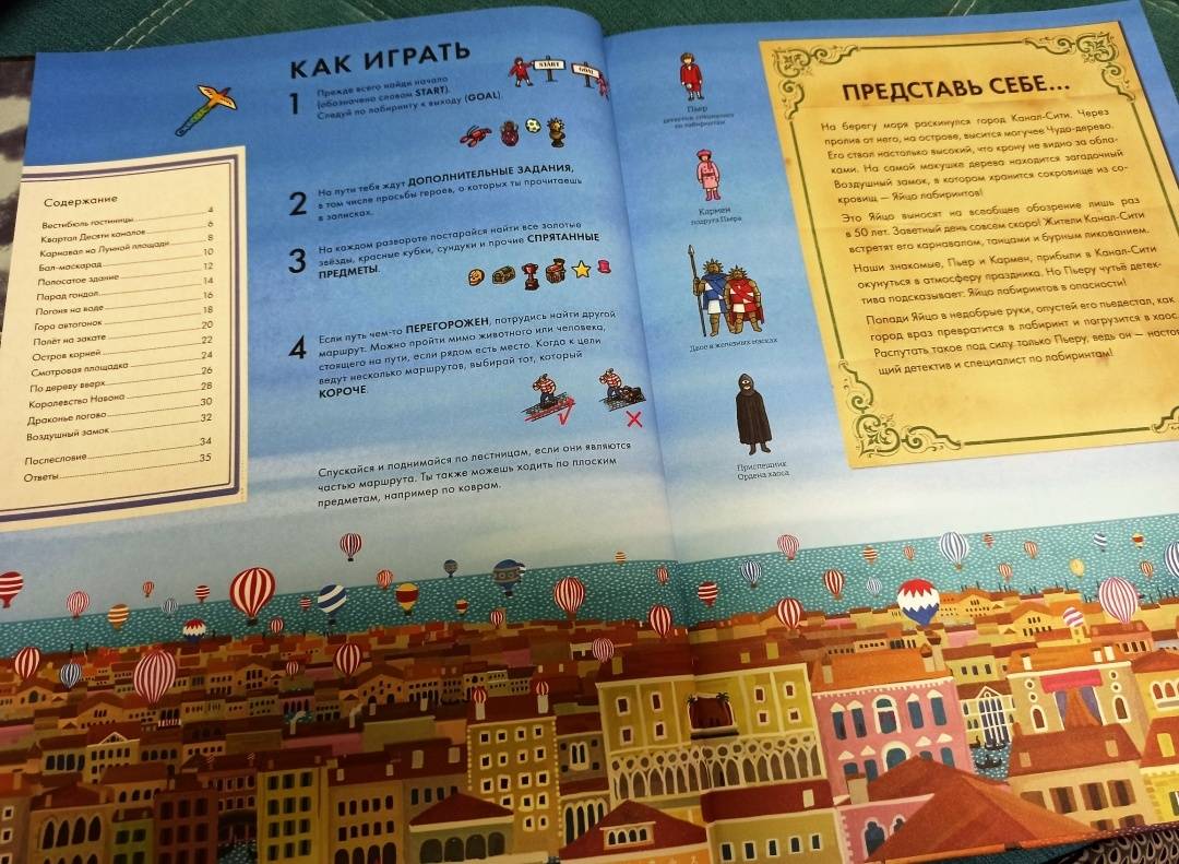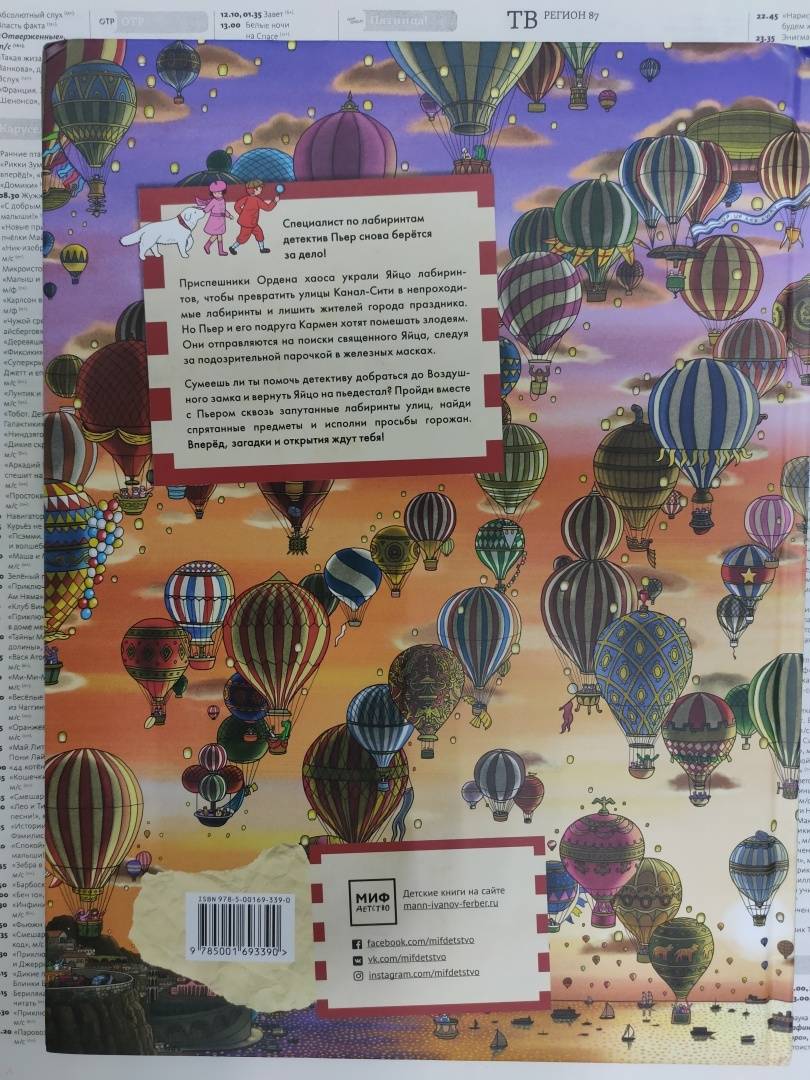 ОписаниеО книгеСпециалист по лабиринтам детектив Пьер снова берется за дело - на этот раз он отправится на поиски главного сокровища Воздушного замка.Приспешники Ордена хаоса украли Яйцо лабиринтов, чтобы превратить улицы Канал-Сити в непроходимые лабиринты и лишить жителей города праздника. Но Пьер и его подруга Кармен хотят помешать злодеям. Они отправляются на поиски священного Яйца, следуя за подозрительной парочкой в железных масках.Сумеешь ли ты помочь детективу добраться до Воздушного замка и вернуть Яйцо на пьедестал? Пройди вместе с Пьером сквозь запутанные лабиринты улиц, найди спрятанные предметы и исполни просьбы горожан.Вперед, загадки и открытия ждут тебя!Фишки книги- 15 уникальных разворотов-лабиринтов от мастеров детальных иллюстраций - японской студии IC4Design- На каждом развороте помимо лабиринта есть задания на внимательность - найти на этих невероятных иллюстрациях мелкие объекты.- Книгу просто интересно разглядывать. Здесь множество персонажей и историй.- Лабиринты, виммельбух и загадки - в одной уникальной книге.Для кого эта книгаДля детей от 8 лет и всех фанатов Детектива Пьера.Для всех, кто обожает головоломки и лабиринты.Для увлеченных загадками детей и взрослых.2-е издание.Об автореХиро Камигаки и IC4DESIGN - автор книги "Детектив Пьер распутывает дело. Сокровище Воздушного замка"IC4Design - японская студия иллюстраторов, одна из самых известных в мире. Специализируется на создании детально прорисованных иллюстраций. Обладатель многочисленных международных наград, в том числе присутствует в списке 200 Best Illustrators Worldwide-09/10. Среди клиентов студии - Adobe, Google, The New York Times Magazine, Mercedes-Bentz, Amtrak, MarsCorp и другие компании.Для старшего дошкольного возраста.СвернутьО книгеСпециалист по лабиринтам детектив Пьер снова берется за дело - на этот раз он отправится на поиски главного сокровища Воздушного замка.Приспешники Ордена хаоса украли Яйцо лабиринтов, чтобы превратить улицы Канал-Сити в непроходимые лабиринты и лишить жителей города праздника. Но Пьер и его подруга Кармен хотят помешать злодеям. Они отправляются на поиски священного Яйца, следуя за подозрительной парочкой в железных масках.Сумеешь ли ты помочь детективу добраться до Воздушного замка и вернуть Яйцо на пьедестал? Пройди вместе с Пьером сквозь запутанные лабиринты улиц, найди спрятанные предметы и исполни просьбы горожан.Вперед, загадки и открытия ждут тебя!Фишки книги- 15 уникальных разворотов-лабиринтов от мастеров детальных иллюстраций - японской студии IC4Design- На каждом развороте помимо лабиринта есть задания на внимательность - найти на этих невероятных иллюстрациях мелкие объекты.- Книгу просто интересно разглядывать. Здесь множество персонажей и историй.- Лабиринты, виммельбух и загадки - в одной уникальной книге.Для кого эта книгаДля детей от 8 лет и всех фанатов Детектива Пьера.Для всех, кто обожает головоломки и лабиринты.Для увлеченных загадками детей и взрослых.2-е издание.Об автореХиро Камигаки и IC4DESIGN - автор книги "Детектив Пьер распутывает дело. Сокровище Воздушного замка"IC4Design - японская студия иллюстраторов, одна из самых известных в мире. Специализируется на создании детально прорисованных иллюстраций. Обладатель многочисленных международных наград, в том числе присутствует в списке 200 Best Illustrators Worldwide-09/10. Среди клиентов студии - Adobe, Google, T