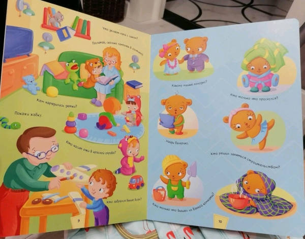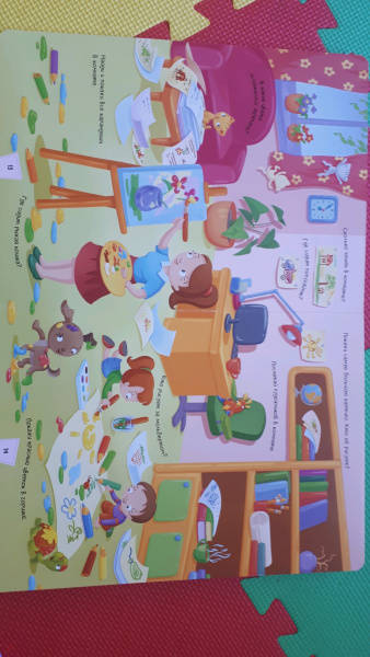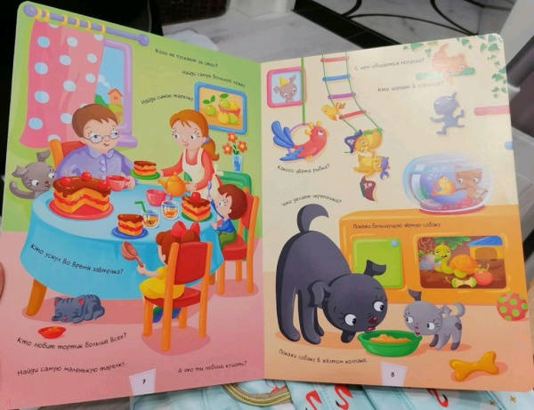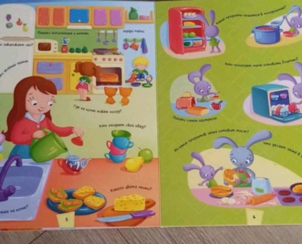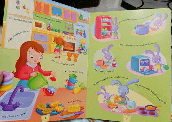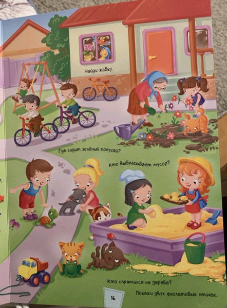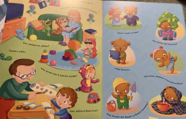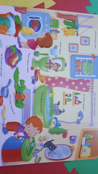 ОписаниеЛистая книжку, малыш заглянет в комнаты домов, рассмотрит, чем занимаются хозяева. Ребёнок ознакомится с разной мебелью, одеждой, едой, бытовой техникой и многим другим. Он сможет угадывать названия комнат, давать имена жильцам и домашним животным.А также придумывать о них истории. Забавный виммельбух - это яркие предметы, разнообразные ситуации; а ещё интересные вопросы, которые помогут потренировать внимательность и узнать что-то новое.Листая книжку, малыш заглянет в комнаты домов, рассмотрит, чем занимаются хозяева. Ребёнок ознакомится с разной мебелью, одеждой, едой, бытовой техникой и многим другим. Он сможет угадывать названия комнат, давать имена жильцам и домашним животным.А также придумывать о них истории. Забавный виммельбух - это яркие предметы, разнообразные ситуации; а ещё интересные вопросы, которые помогут потренировать внимательность и узнать что-то новое.