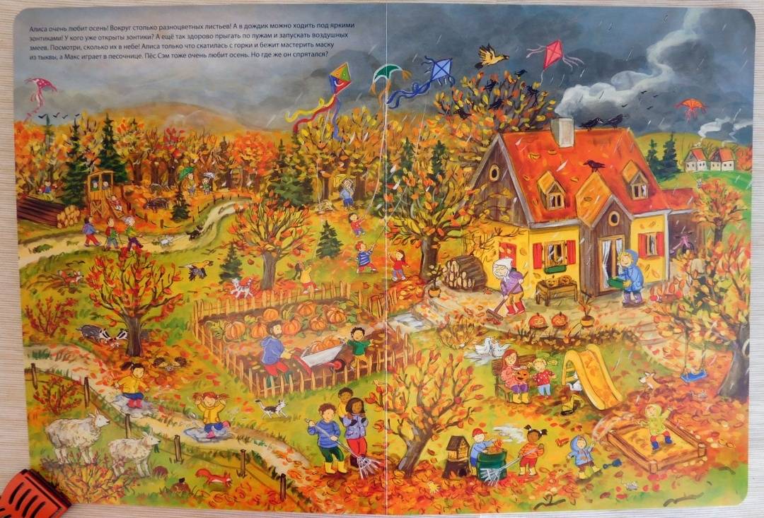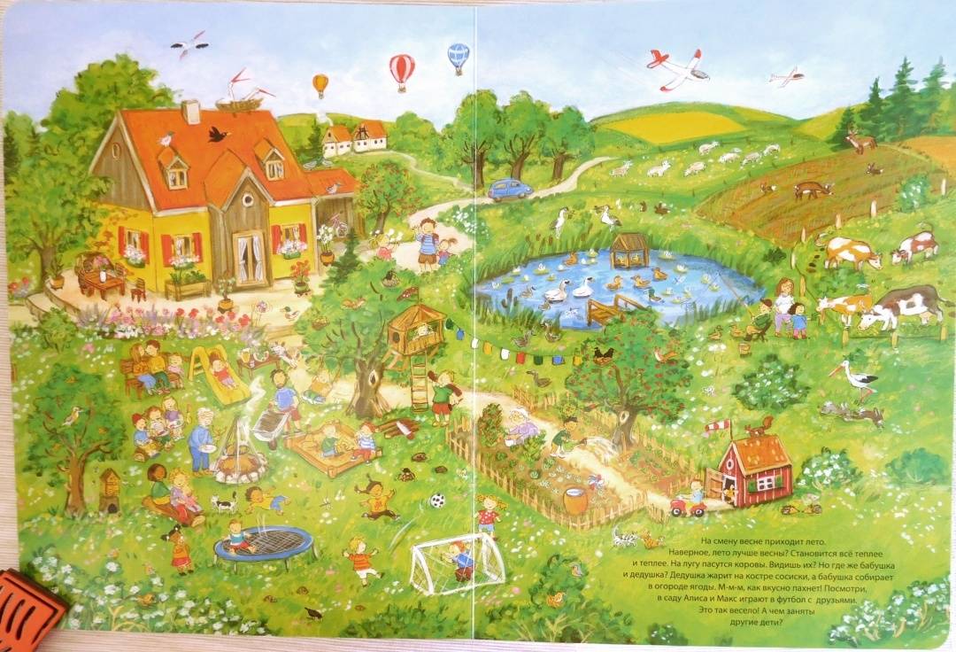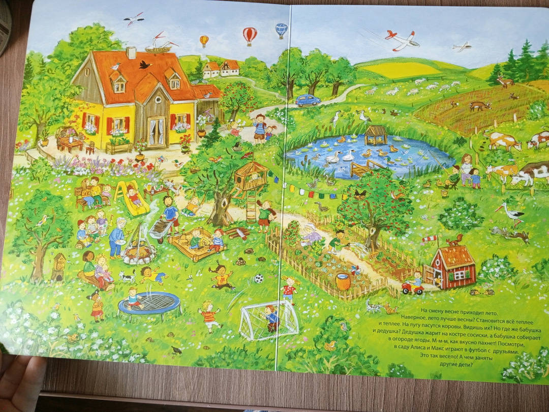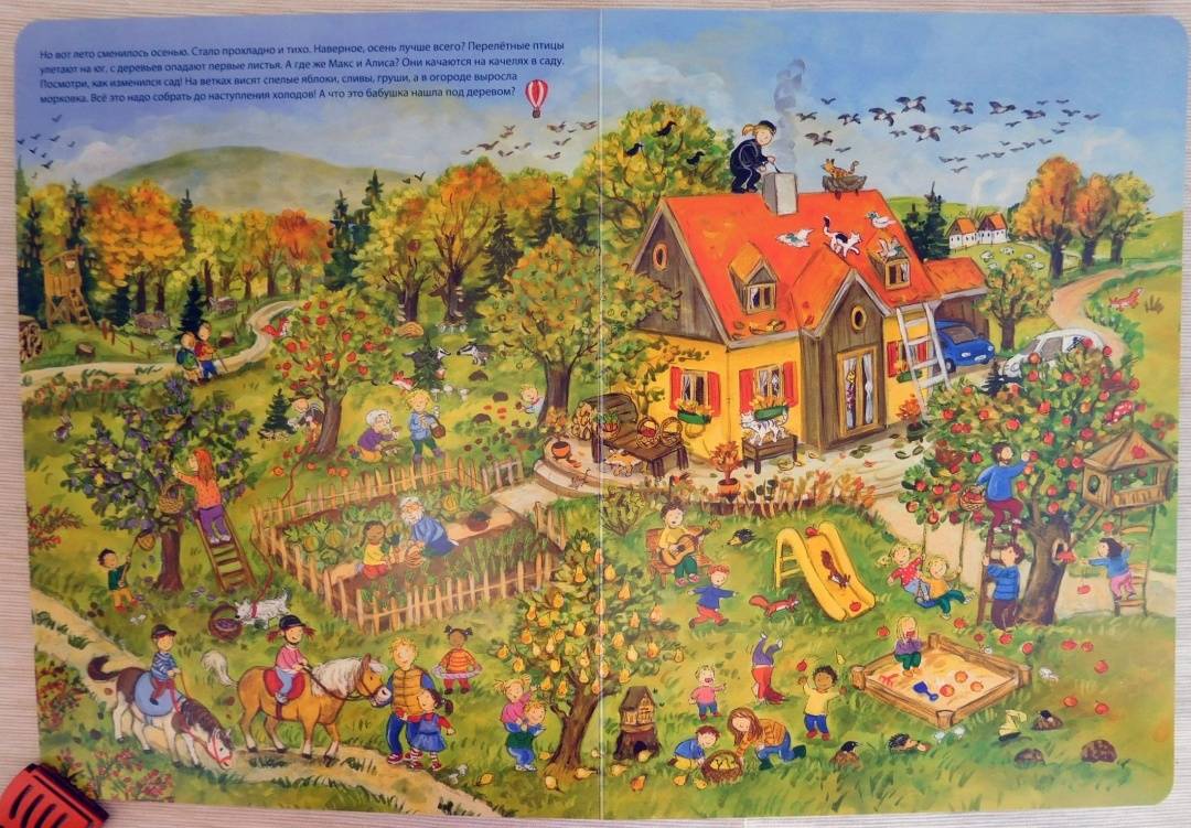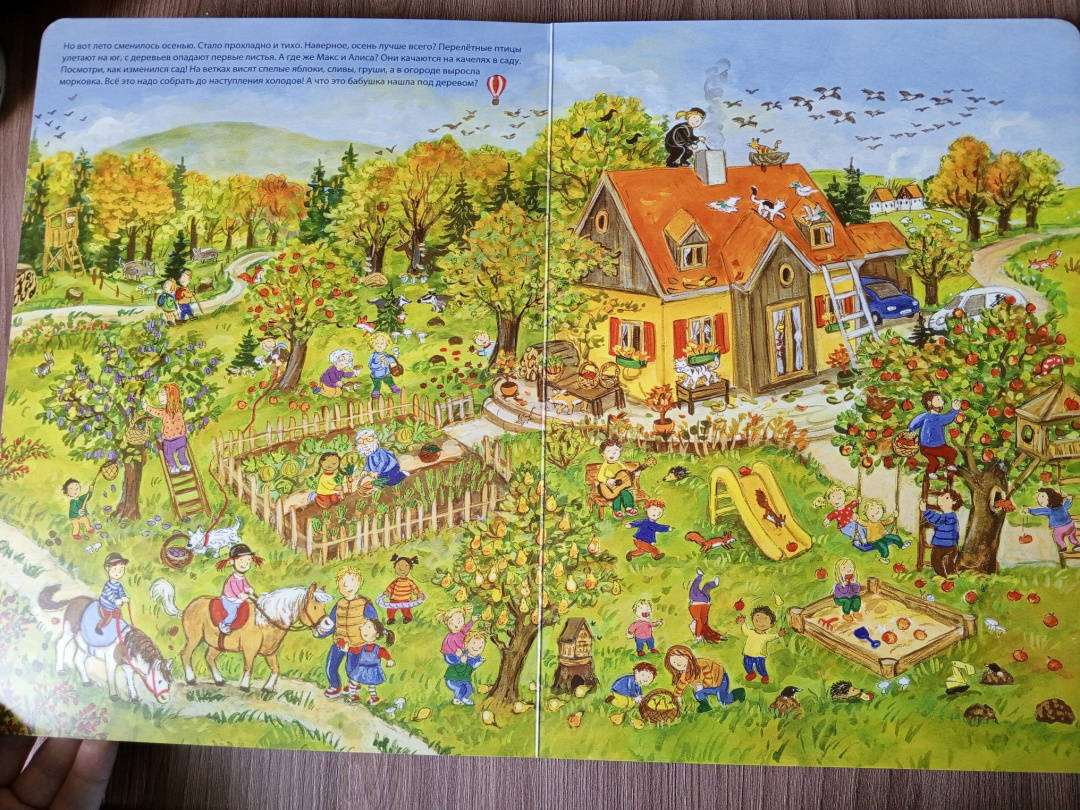 ОписаниеКакое время года лучше? Весна, когда распускаются цветы и возвращаются домой перелетные птицы? Жаркое лето, когда так приятно купаться в прохладной воде и есть мороженое? А может быть, осень, когда деревья становятся золотыми и красными? Или снежная зима, когда так весело играть в снежки и кататься на коньках? Понаблюдай вместе с Алисой и ее братиком Максом, как меняется природа в течение года. А заодно разгляди на картинках множество интересных деталей и забавных персонажей.Книга большого формата, напечатана на плотном картоне.Для чтения взрослыми детям.Какое время года лучше? Весна, когда распускаются цветы и возвращаются домой перелетные птицы? Жаркое лето, когда так приятно купаться в прохладной воде и есть мороженое? А может быть, осень, когда деревья становятся золотыми и красными? Или снежная зима, когда так весело играть в снежки и кататься на коньках? Понаблюдай вместе с Алисой и ее братиком Максом, как меняется природа в течение года. А заодно разгляди на картинках множество интересных деталей и забавных персонажей.Книга большого формата, напечатана на плотном картоне.Для чтения взрослыми детям.