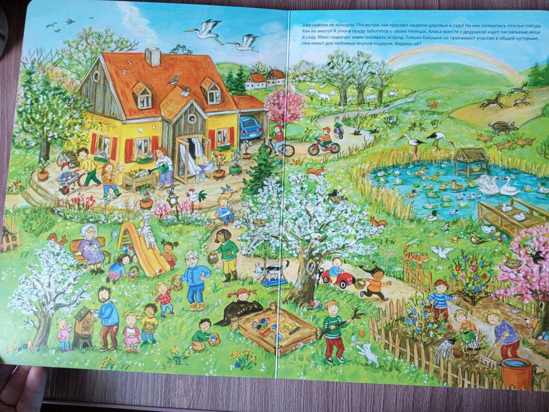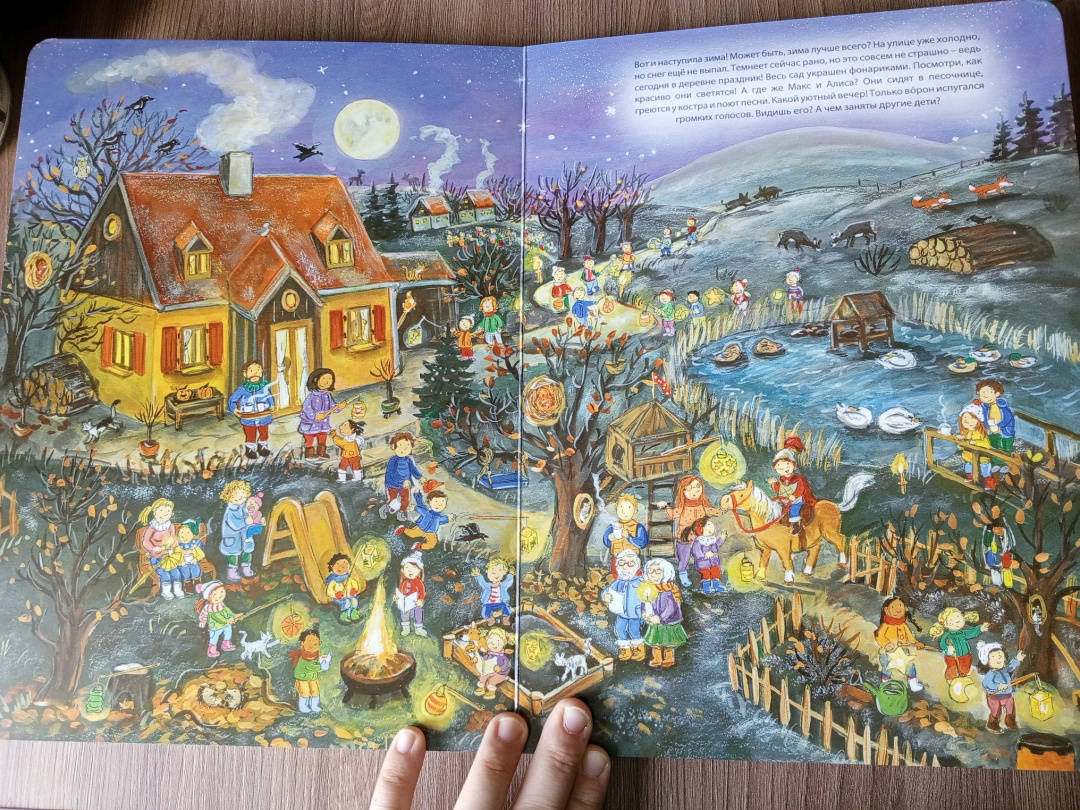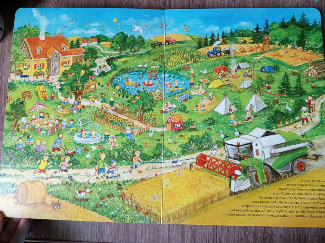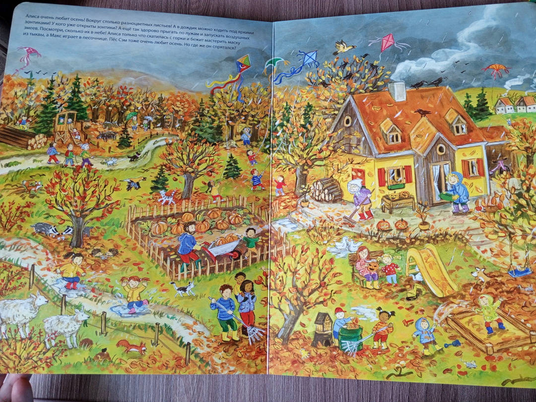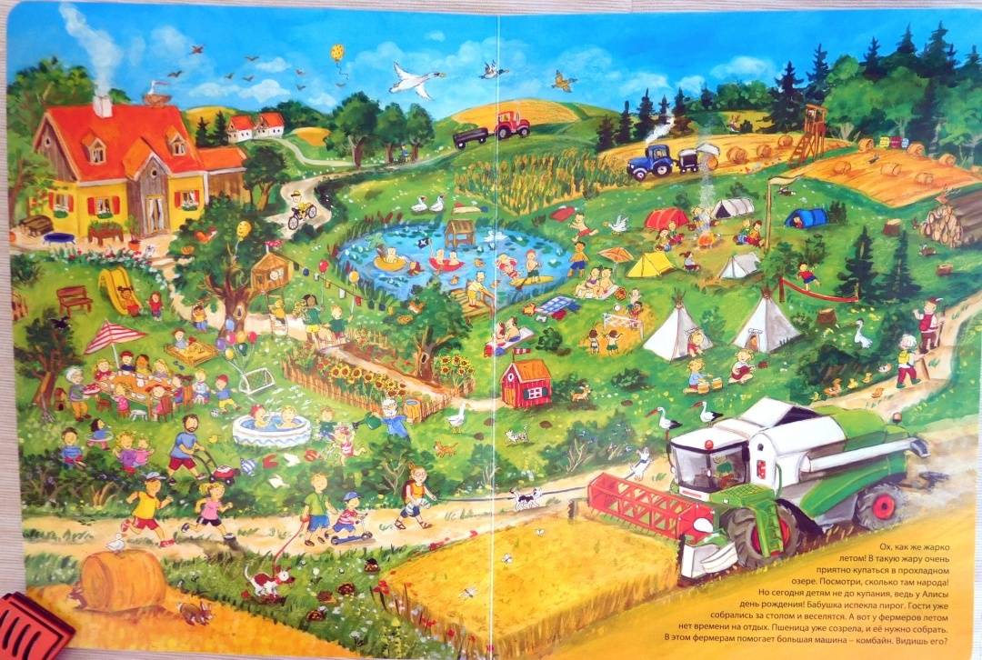 ОписаниеКакое время года лучше? Весна, когда распускаются цветы и возвращаются домой перелетные птицы? Жаркое лето, когда так приятно купаться в прохладной воде и есть мороженое? А может быть, осень, когда деревья становятся золотыми и красными? Или снежная зима, когда так весело играть в снежки и кататься на коньках? Понаблюдай вместе с Алисой и ее братиком Максом, как меняется природа в течение года. А заодно разгляди на картинках множество интересных деталей и забавных персонажей.Книга большого формата, напечатана на плотном картоне.Для чтения взрослыми детям.Какое время года лучше? Весна, когда распускаются цветы и возвращаются домой перелетные птицы? Жаркое лето, когда так приятно купаться в прохладной воде и есть мороженое? А может быть, осень, когда деревья становятся золотыми и красными? Или снежная зима, когда так весело играть в снежки и кататься на коньках? Понаблюдай вместе с Алисой и ее братиком Максом, как меняется природа в течение года. А заодно разгляди на картинках множество интересных деталей и забавных персонажей.Книга большого формата, напечатана на плотном картоне.Для чтения взрослыми детям.
