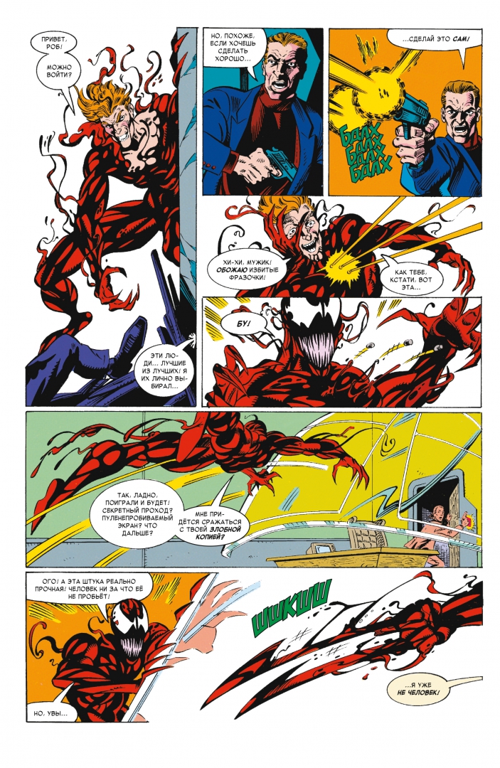 ОписаниеДаёшь резню! При побеге Эдди Брока из тюрьмы от его симбиота отделилась небольшая часть и слилась с сокамерником Венома, маньяком Клетусом Кэссиди. Так родился Карнаж! Теперь Нью-Йорк в ужасе, никто не чувствует себя в безопасности. Карнаж убивает без разбору, его жертвами становятся даже самые беззащитные. На что придётся пойти Человеку-пауку чтобы остановить психопата? Хватит ли помощи проверенных друзей или звать на подмогу придётся злейшего врага?Даёшь резню! При побеге Эдди Брока из тюрьмы от его симбиота отделилась небольшая часть и слилась с сокамерником Венома, маньяком Клетусом Кэссиди. Так родился Карнаж! Теперь Нью-Йорк в ужасе, никто не чувствует себя в безопасности. Карнаж убивает без разбору, его жертвами становятся даже самые беззащитные. На что придётся пойти Человеку-пауку чтобы остановить психопата? Хватит ли помощи проверенных друзей или звать на подмогу придётся злейшего врага?