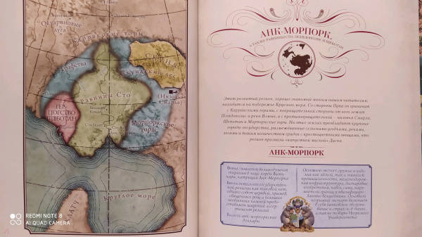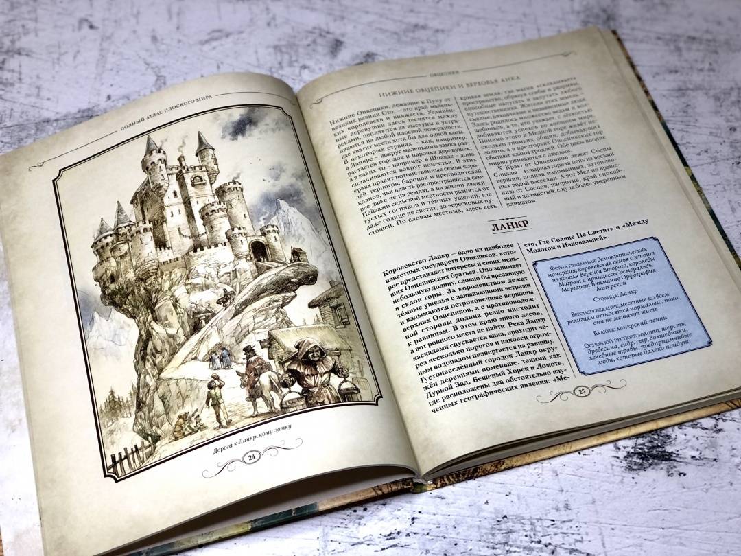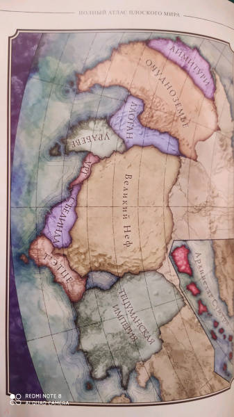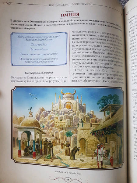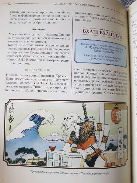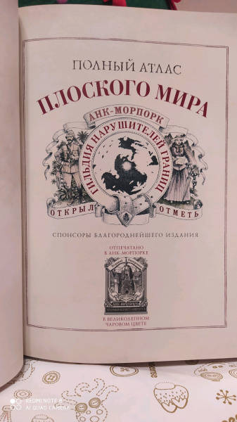 ОписаниеНезримый Университет рад представить самый Полный атлас Плоского мира!Опираясь на знания исследователей, моряков, торговцев и проповедников, найдите Острова Пряностей. Проследите за течением реки Кнек до Великого Плесневого Озера. Взгляните на обширные пустыни континента Клатч (и не позволяйте больше своим козам пастись где не следует). Узнайте, где находится самый большой магазин ковров и что ждёт путешественника в землях Великого Нефа. Насладитесь флорой и фауной эфемерной страны За-Лунь (к вашим услугам — пчёлы-убийцы, ядовитые змеи, арбузы-кровососы и непроходимые зелёные насаждения).Незримый Университет рад представить самый Полный атлас Плоского мира!Опираясь на знания исследователей, моряков, торговцев и проповедников, найдите Острова Пряностей. Проследите за течением реки Кнек до Великого Плесневого Озера. Взгляните на обширные пустыни континента Клатч (и не позволяйте больше своим козам пастись где не следует). Узнайте, где находится самый большой магазин ковров и что ждёт путешественника в землях Великого Нефа. Насладитесь флорой и фауной эфемерной страны За-Лунь (к вашим услугам — пчёлы-убийцы, ядовитые змеи, арбузы-кровососы и непроходимые зелёные насаждения).