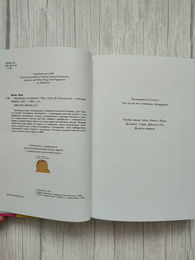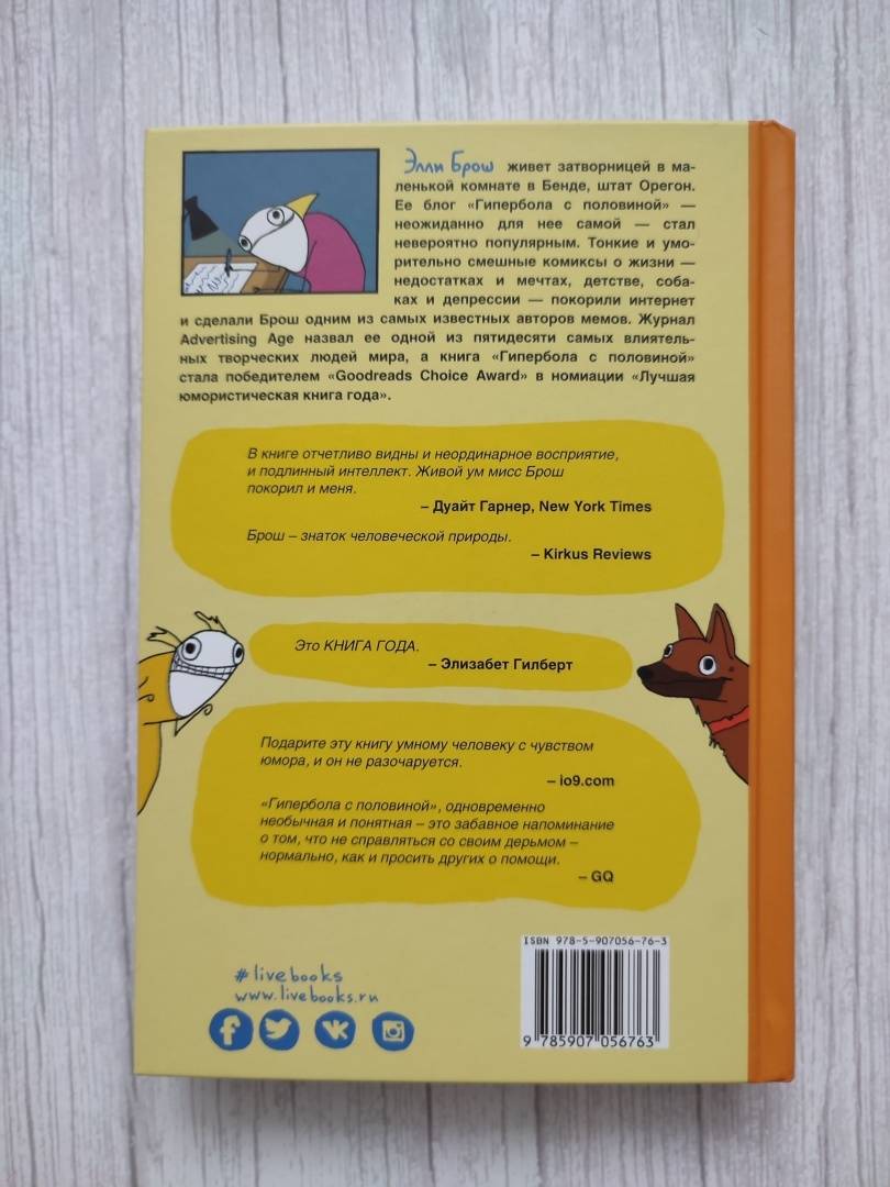 ОписаниеЭлли Брош живет затворницей в маленькой комнате в Бенде, штат Орегон. Ее блог "Гипербола с половиной" - неожиданно для нее самой - стал невероятно популярным. Тонкие и уморительно смешные комиксы о жизни - недостатках и мечтах, детстве, собаках и депрессии - покорили интернет и сделали Брош одним из самых известных авторов мемов.Журнал Advertising Age назвал ее одной из пятидесяти самых влиятельных творческих людей мира, а книга "Гипербола с половиной" стала победителем "GR Choice Award" в номинации "Лучшая юмористическая книга года" и книгой года по версии "NPR".Элли Брош живет затворницей в маленькой комнате в Бенде, штат Орегон. Ее блог "Гипербола с половиной" - неожиданно для нее самой - стал невероятно популярным. Тонкие и уморительно смешные комиксы о жизни - недостатках и мечтах, детстве, собаках и депрессии - покорили интернет и сделали Брош одним из самых известных авторов мемов.Журнал Advertising Age назвал ее одной из пятидесяти самых влиятельных творческих людей мира, а книга "Гипербола с половиной" стала победителем "GR Choice Award" в номинации "Лучшая юмористическая книга года" и книгой года по версии "NPR".