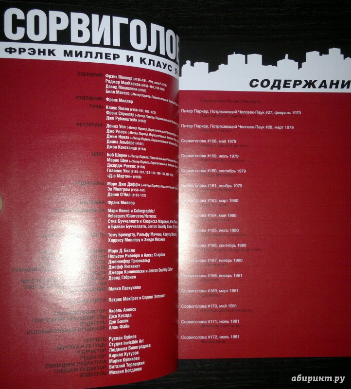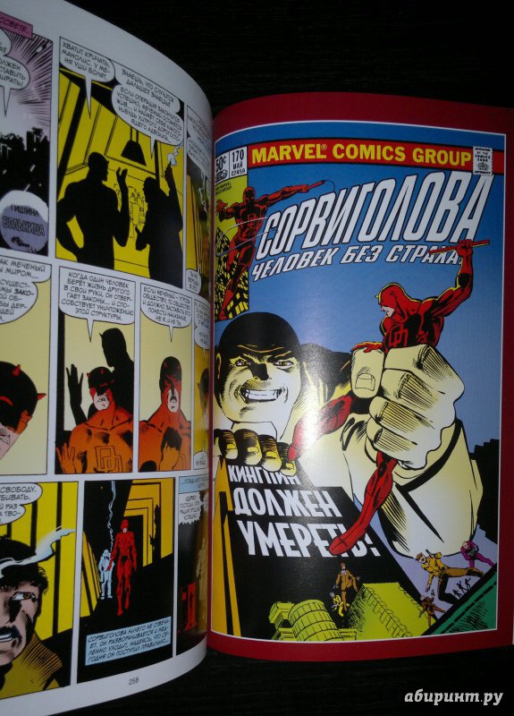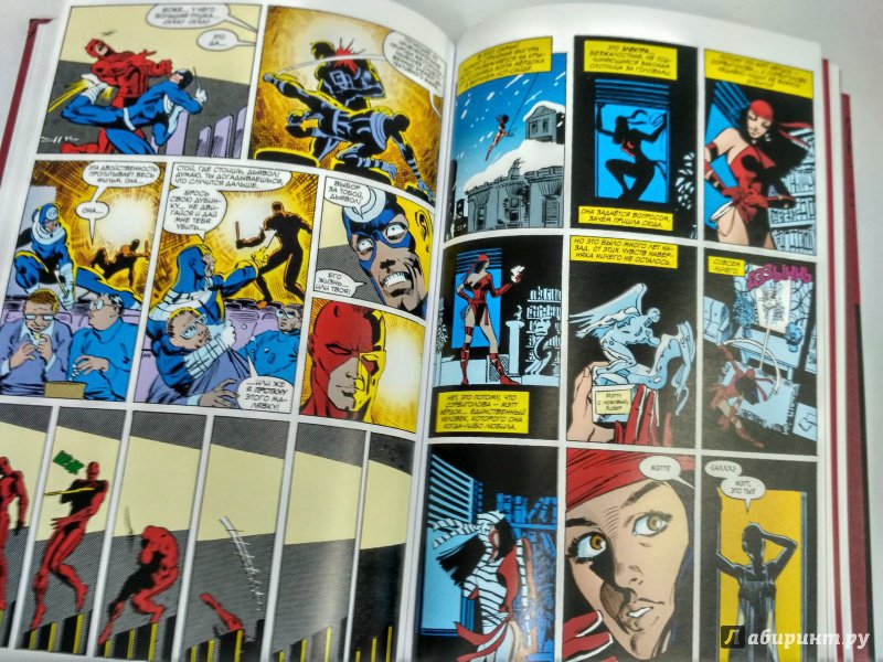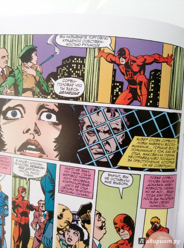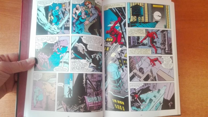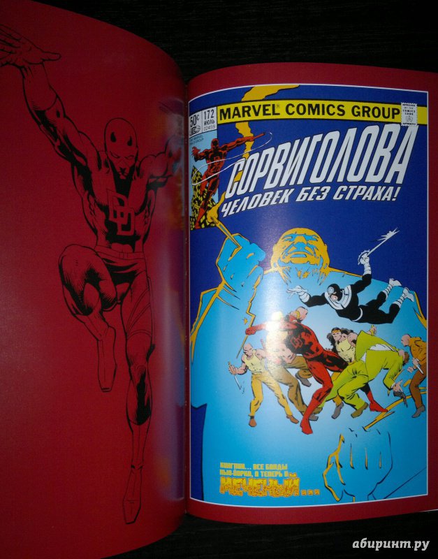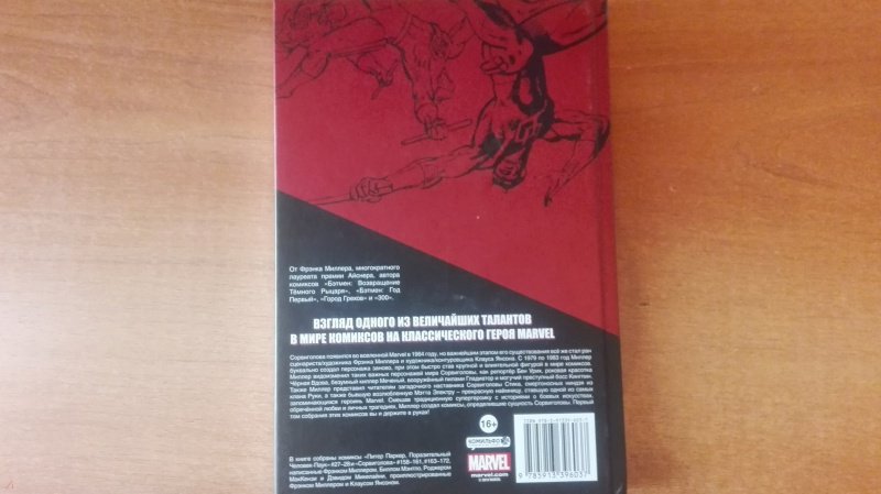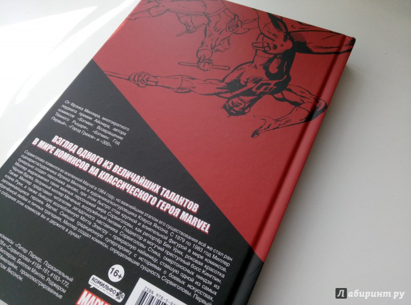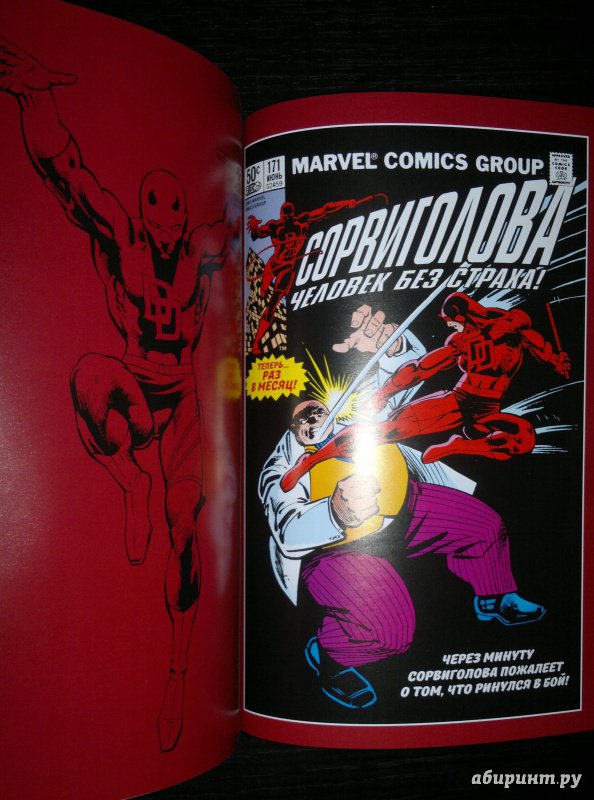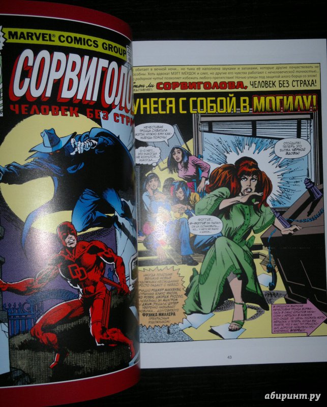 ОписаниеСорвиголова появился во вселенной Marvel в 1964 году, но важнейшим этапом его существования всё же стал ран сценариста/художника Фрэнка Миллера и художника/контуровщика Клауса Янсона. С 1979 по 1983 год Миллер буквально создал персонажа заново, при этом быстро став крупной и влиятельной фигурой в мире комиксов.Миллер видоизменил таких важных персонажей мира Сорвиголовы, как репортёр Бен Урих, роковая красотка Чёрная Вдова, безумный киллер Меченый, вооружённый пилами Гладиатор и могучий преступный босс Кингпин.Также Миллер представил читателям загадочного наставника Сорвиголовы Стика, смертоносных ниндзя из клана Руки, а также бывшую возлюбленную Мэтта Электру - прекрасную наёмницу, ставшую одной из самых запоминающихся героинь Marvel. Смешав традиционную супергероику с историями о боевых искусствах, обречённой любви и личных трагедиях, Миллер создал комиксы, определившие сущность Сорвиголовы. Первый том собрания этих комиксов вы и держите в руках!.Сорвиголова появился во вселенной Marvel в 1964 году, но важнейшим этапом его существования всё же стал ран сценариста/художника Фрэнка Миллера и художника/контуровщика Клауса Янсона. С 1979 по 1983 год Миллер буквально создал персонажа заново, при этом быстро став крупной и влиятельной фигурой в мире комиксов.Миллер видоизменил таких важных персонажей мира Сорвиголовы, как репортёр Бен Урих, роковая красотка Чёрная Вдова, безумный киллер Меченый, вооружённый пилами Гладиатор и могучий преступный босс Кингпин.Также Миллер представил читателям загадочного наставника Сорвиголовы Стика, смертоносных ниндзя из клана Руки, а также бывшую возлюбленную Мэтта Электру - прекрасную наёмницу, ставшую одной из самых запоминающихся героинь Marvel. Смешав традиционную супергероику с историями о боевых искусствах, обречённой любви и личных трагедиях, Миллер создал комиксы, определившие сущность Сорвиголовы. Первый том собрания этих комиксов вы и держите в руках!.