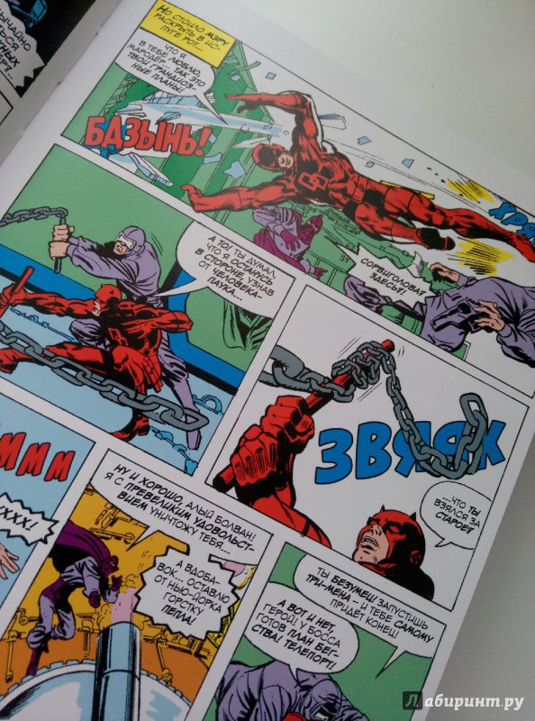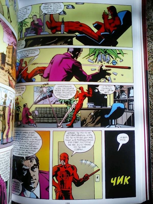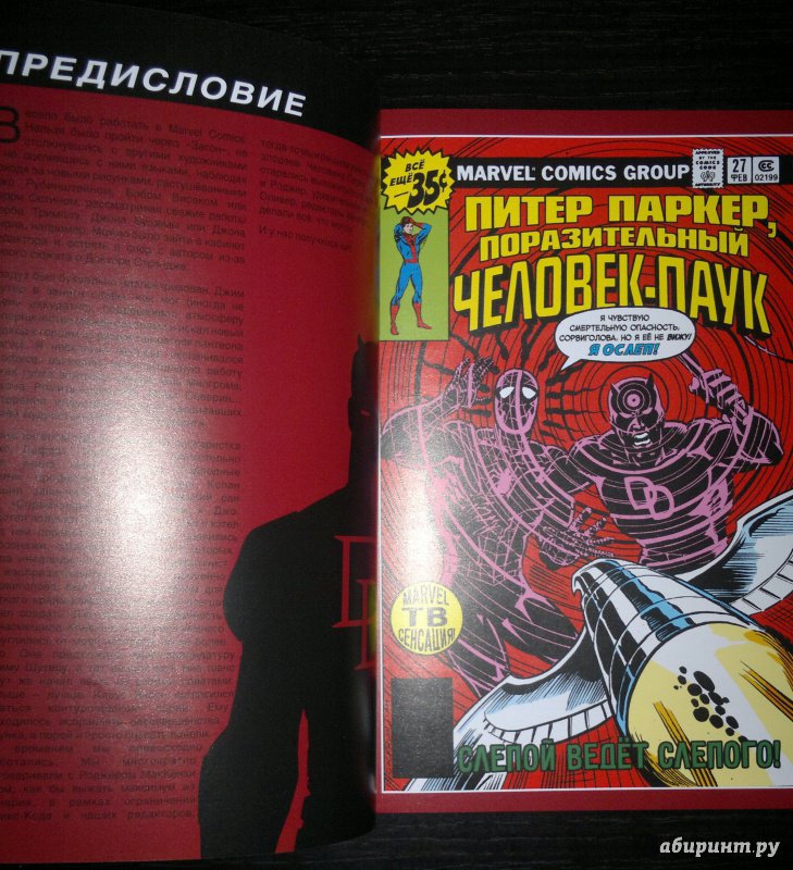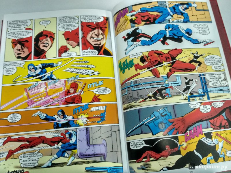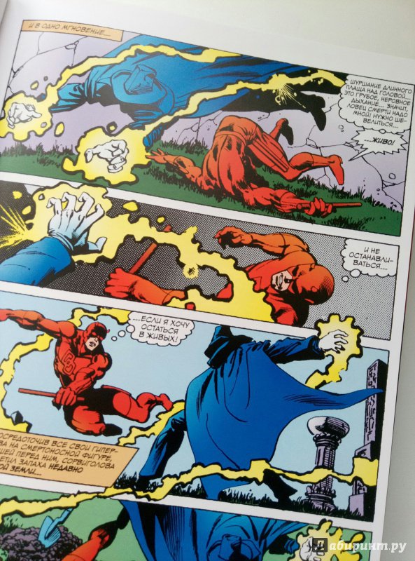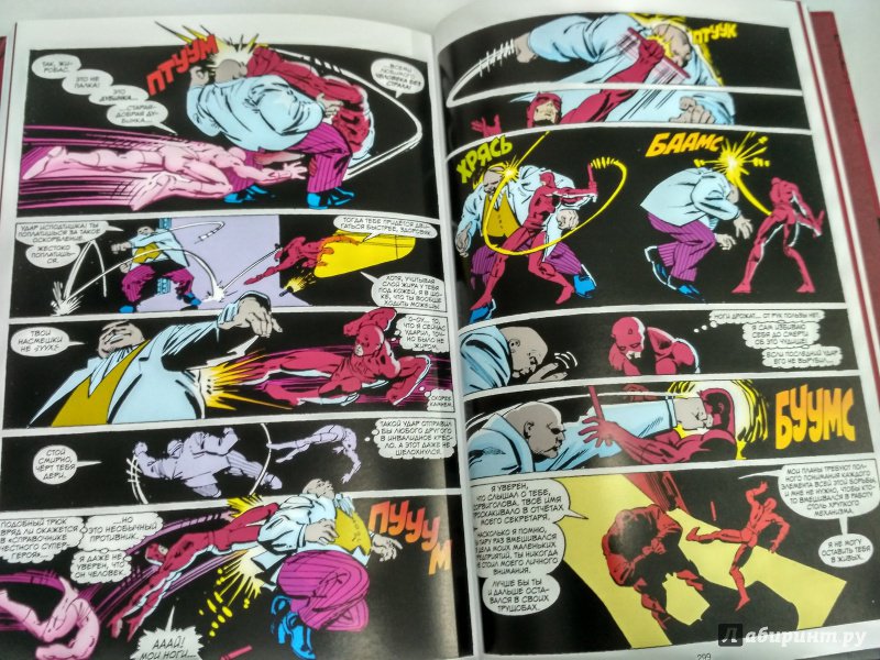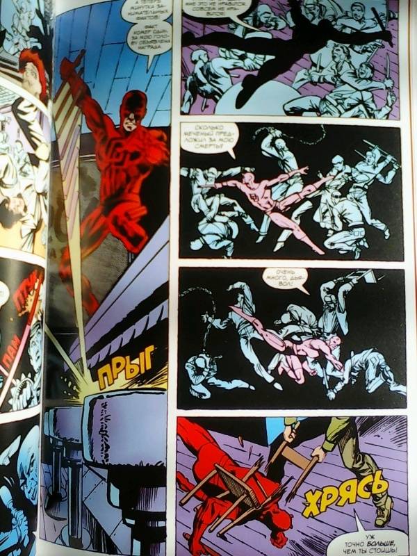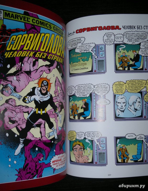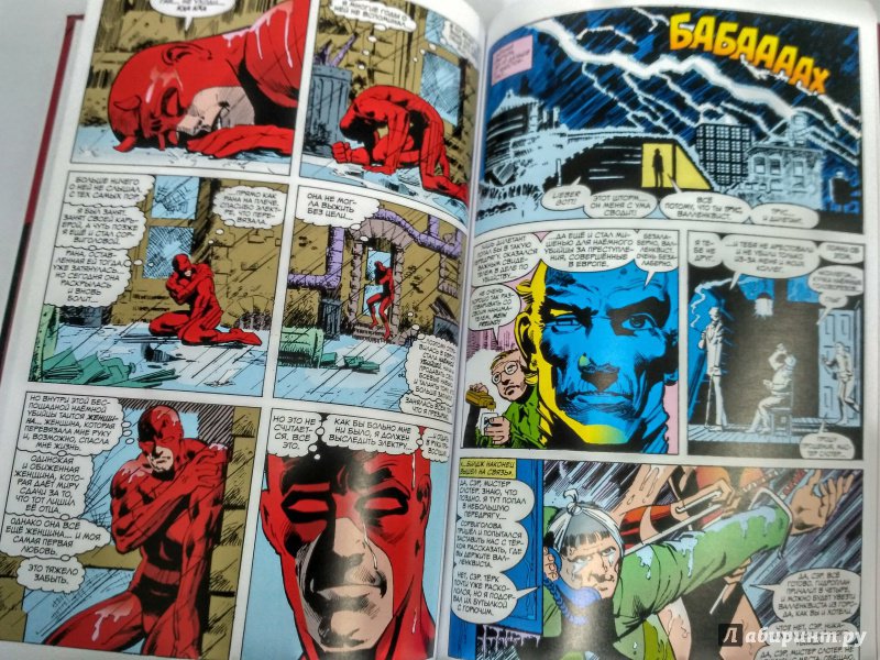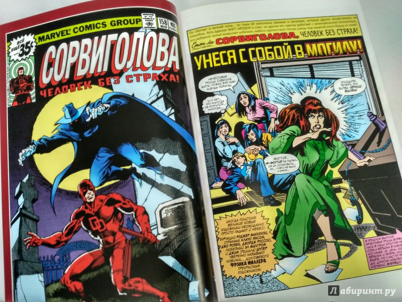 ОписаниеСорвиголова появился во вселенной Marvel в 1964 году, но важнейшим этапом его существования всё же стал ран сценариста/художника Фрэнка Миллера и художника/контуровщика Клауса Янсона. С 1979 по 1983 год Миллер буквально создал персонажа заново, при этом быстро став крупной и влиятельной фигурой в мире комиксов.Миллер видоизменил таких важных персонажей мира Сорвиголовы, как репортёр Бен Урих, роковая красотка Чёрная Вдова, безумный киллер Меченый, вооружённый пилами Гладиатор и могучий преступный босс Кингпин.Также Миллер представил читателям загадочного наставника Сорвиголовы Стика, смертоносных ниндзя из клана Руки, а также бывшую возлюбленную Мэтта Электру - прекрасную наёмницу, ставшую одной из самых запоминающихся героинь Marvel. Смешав традиционную супергероику с историями о боевых искусствах, обречённой любви и личных трагедиях, Миллер создал комиксы, определившие сущность Сорвиголовы. Первый том собрания этих комиксов вы и держите в руках!.Сорвиголова появился во вселенной Marvel в 1964 году, но важнейшим этапом его существования всё же стал ран сценариста/художника Фрэнка Миллера и художника/контуровщика Клауса Янсона. С 1979 по 1983 год Миллер буквально создал персонажа заново, при этом быстро став крупной и влиятельной фигурой в мире комиксов.Миллер видоизменил таких важных персонажей мира Сорвиголовы, как репортёр Бен Урих, роковая красотка Чёрная Вдова, безумный киллер Меченый, вооружённый пилами Гладиатор и могучий преступный босс Кингпин.Также Миллер представил читателям загадочного наставника Сорвиголовы Стика, смертоносных ниндзя из клана Руки, а также бывшую возлюбленную Мэтта Электру - прекрасную наёмницу, ставшую одной из самых запоминающихся героинь Marvel. Смешав традиционную супергероику с историями о боевых искусствах, обречённой любви и личных трагедиях, Миллер создал комиксы, определившие сущность Сорвиголовы. Первый том собрания этих комиксов вы и держите в руках!.