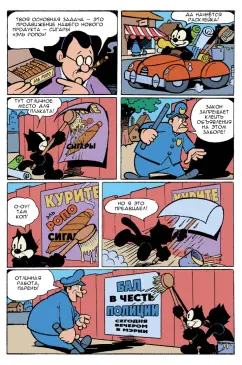 ОписаниеК середине 20-х годов Кот Феликс завладел вниманием зрителей по всему миру, мультики про него смотрели в США, Европе, Азии и Южной Америке. В 1924 году в Англии мягкие игрушки Феликса обогнали по продажам самую известную игрушку того времени — Медвежонка Тедди. Мультфильмы про находчивого кота, который регулярно попадал в нелепые передряги, по известности можно было сравнить разве что с фильмами Чарли Чаплина. Но, как и фильмы Чаплина, немые похождения Феликса не смогли прижиться в новой эре звукового кино, интерес к персонажу постепенно угас. Приключения Феликса, нарисованные Отто Мессмером, продолжались на страницах комиксов. В эту антологию вошли сюжеты двух серий Pat Sullivan’s Felix the Cat от издательства Toby Press и Felix the Cat от Dell Publishing. Читайте впервые на русском!К середине 20-х годов Кот Феликс завладел вниманием зрителей по всему миру, мультики про него смотрели в США, Европе, Азии и Южной Америке. В 1924 году в Англии мягкие игрушки Феликса обогнали по продажам самую известную игрушку того времени — Медвежонка Тедди. Мультфильмы про находчивого кота, который регулярно попадал в нелепые передряги, по известности можно было сравнить разве что с фильмами Чарли Чаплина. Но, как и фильмы Чаплина, немые похождения Феликса не смогли прижиться в новой эре звукового кино, интерес к персонажу постепенно угас. Приключения Феликса, нарисованные Отто Мессмером, продолжались на страницах комиксов. В эту антологию вошли сюжеты двух серий Pat Sullivan’s Felix the Cat от издательства Toby Press и Felix the Cat от Dell Publishing. Читайте впервые на русском!