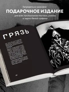 В ваших руках — целая коллекция леденящих душу шедевров, включающая в себя более 150-ти иллюстраций, а также эксклюзивные комментарии автора. Этот артбук содержит его лучшие работы, начиная с 2012 года: от гипнотизирующих абстракций и мрачных чернильных лесов до изящных изображений обнаженных дам, и чудищ японского фольклора. Автор создает уникальную графику при помощи всего лишь двух материалов – бумаги и черной туши.