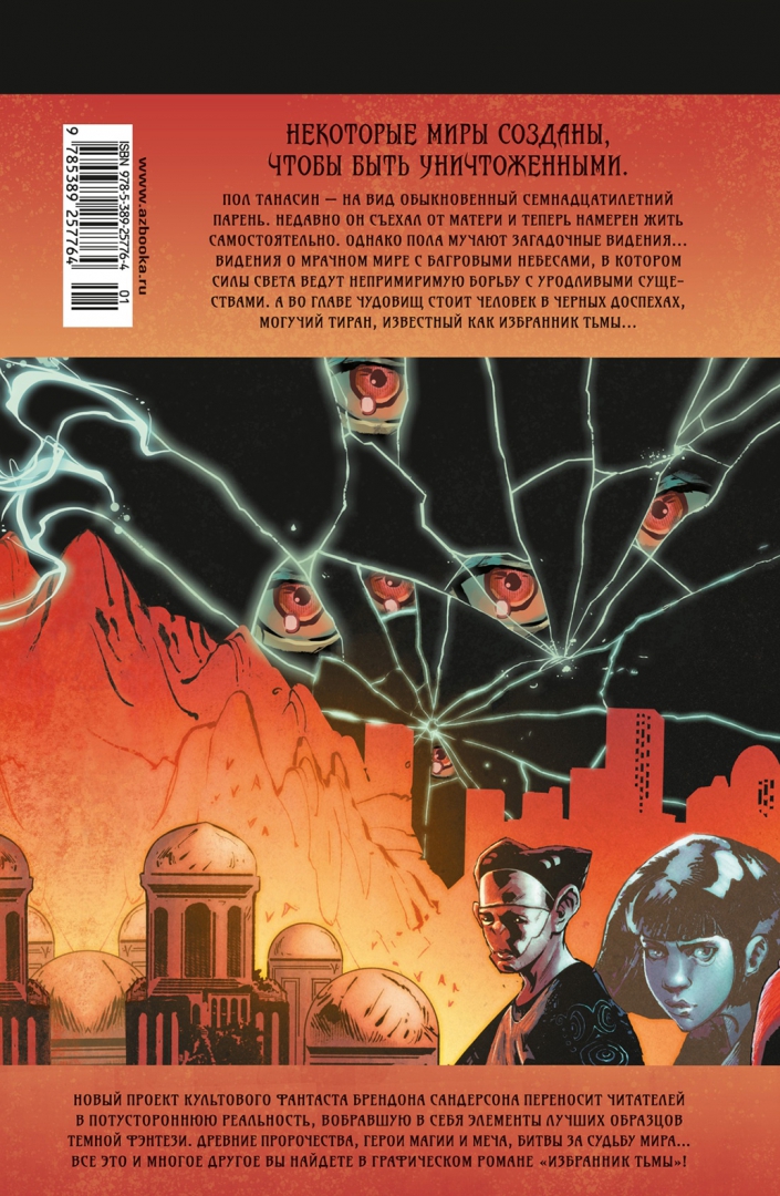 ОписаниеПол Танасин - на вид обыкновенный семнадцатилетний парень. Недавно он съехал от матери и теперь намерен жить самостоятельно. Однако Пола мучают загадочные видения... Видения о мрачном мире с багровыми небесами, в котором силы света ведут непримиримую борьбу с уродливыми существами. А во главе чудовищ стоит человек в черных доспехах, могучий тиран, известный как Избранник Тьмы. Пол пытается выяснить, почему его преследуют эти навязчивые образы, однако правда, которая открывается юноше, переворачивает его непримечательную жизнь с ног на голову... Новый проект культового фантаста Брендона Сандерсона переносит читателей в потустороннюю реальность, вобравшую в себя элементы лучших образцов темной фэнтези. Древние пророчества, герои магии и меча, битвы за судьбу мира... Все это и многое другое вы найдете в графическом романе "Избранник Тьмы"!Пол Танасин - на вид обыкновенный семнадцатилетний парень. Недавно он съехал от матери и теперь намерен жить самостоятельно. Однако Пола мучают загадочные видения... Видения о мрачном мире с багровыми небесами, в котором силы света ведут непримиримую борьбу с уродливыми существами. А во главе чудовищ стоит человек в черных доспехах, могучий тиран, известный как Избранник Тьмы. Пол пытается выяснить, почему его преследуют эти навязчивые образы, однако правда, которая открывается юноше, переворачивает его непримечательную жизнь с ног на голову... Новый проект культового фантаста Брендона Сандерсона переносит читателей в потустороннюю реальность, вобравшую в себя элементы лучших образцов темной фэнтези. Древние пророчества, герои магии и меча, битвы за судьбу мира... Все это и многое другое вы найдете в графическом романе "Избранник Тьмы"!