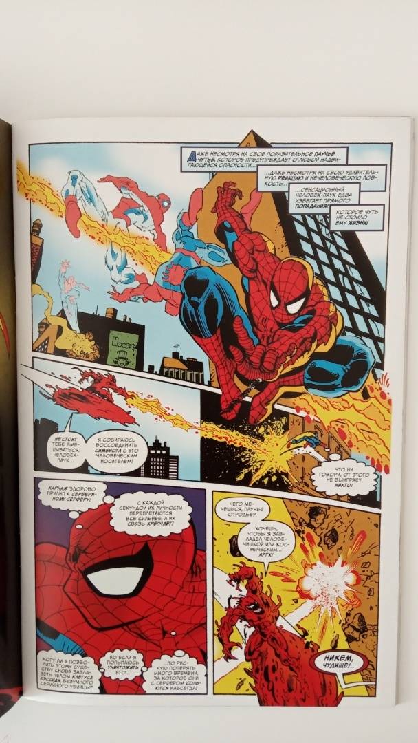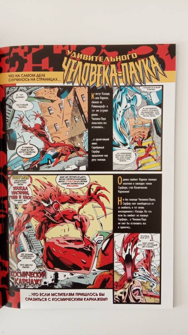 ОписаниеОднажды Человеку Пауку и Серебряному Серферу уже удалось победить безумного симбиота-потрошителя.Но что, если тогда Карнажу все-таки удалось бы взять контроль над Серфером и заполучить его космические силы? Тогда в дело пришлось бы вмешаться Мстителям!Ответ на вопрос, кто победит в битве за судьбу человечества: Космический Карнаж или величайшие герои земли, вы найдете на страницах этого комикса!Однажды Человеку Пауку и Серебряному Серферу уже удалось победить безумного симбиота-потрошителя.Но что, если тогда Карнажу все-таки удалось бы взять контроль над Серфером и заполучить его космические силы? Тогда в дело пришлось бы вмешаться Мстителям!Ответ на вопрос, кто победит в битве за судьбу человечества: Космический Карнаж или величайшие герои земли, вы найдете на страницах этого комикса!