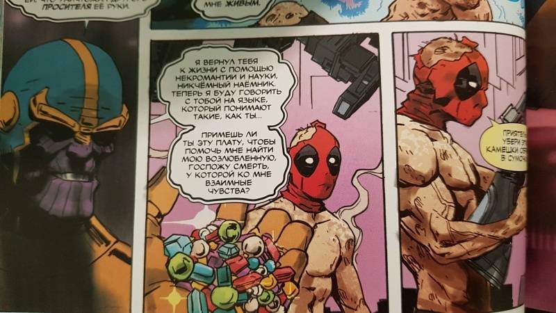 ОписаниеК этому противостоянию вели все комиксы Marvel: бесконечность для Дэдпула не предел, и он бросает перчатку в лицо Таносу с Титана!Эти вредоносные воины словно две стороны нечестивого любовного треугольника со Смертью, их капризной госпожой. Но когда всё во Вселенной перестаёт умирать, сможет ли красотка с убойными скулами занять свои костлявые руки кем-нибудь ещё??? Вы хоть раз слыхали о любовном квадрате? Как такое вообще возможно? Умалишённому Титану и Безумному Болвану придётся объединить силы, чтобы узнать, в чём дело, когда они отправятся "от неё к вечности"!В гостях самый популярный и любимый всеми персонаж Marvel Чёрный Коготь плюс какие-то никому не известные Стражи Галактики.В сборник входят номера Дэдпул против Таноса #1- 4 от автора Тима Сили и художника Элмо Бондока.К этому противостоянию вели все комиксы Marvel: бесконечность для Дэдпула не предел, и он бросает перчатку в лицо Таносу с Титана!Эти вредоносные воины словно две стороны нечестивого любовного треугольника со Смертью, их капризной госпожой. Но когда всё во Вселенной перестаёт умирать, сможет ли красотка с убойными скулами занять свои костлявые руки кем-нибудь ещё??? Вы хоть раз слыхали о любовном квадрате? Как такое вообще возможно? Умалишённому Титану и Безумному Болвану придётся объединить силы, чтобы узнать, в чём дело, когда они отправятся "от неё к вечности"!В гостях самый популярный и любимый всеми персонаж Marvel Чёрный Коготь плюс какие-то никому не известные Стражи Галактики.В сборник входят номера Дэдпул против Таноса #1- 4 от автора Тима Сили и художника Элмо Бондока.