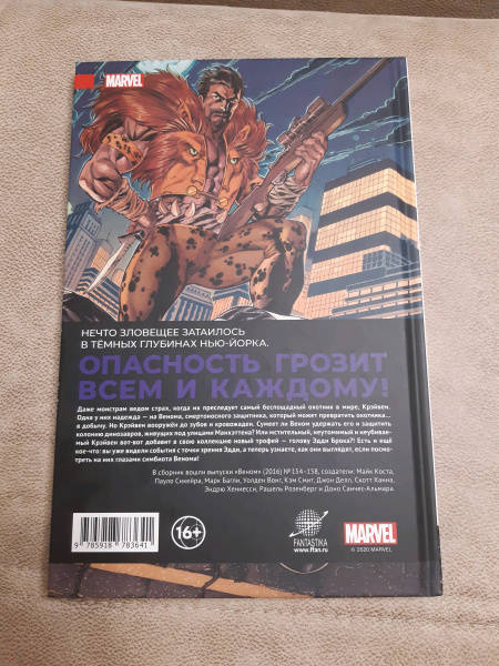 ОписаниеДаже монстрам ведом страх, когда их преследует самый беспощадный охотник в мире, Крэйвен. Одна у них надежда — на Венома, смертоносного защитника, который может превратить охотника… в добычу. Но Крэйвен вооружён до зубов и кровожаден. Сумеет ли Веном удержать его и защитить колонию динозавров, живущих под улицами Манхэттена? Или мстительный, неутомимый и неубиваемый Крэйвен вот-вот добавит в свою коллекцию новый трофей — голову Эдди Брока?! Есть и ещё кое-что: вы уже видели события с точки зрения Эдди, а теперь узнаете, как они выглядят, если посмотреть на них глазами симбиота Венома! В сборник вошли выпуски «Веном» (2016) № 154–158, создатели: Майк Коста, Пауло Сикейра, Марк Багли, Уолден Вонг, Кэм Смит, Джонн Делл, Скотт Ханна, Эндрю Хеннесси, Рашель Розенберг и Доно Санчес-Альмара.Даже монстрам ведом страх, когда их преследует самый беспощадный охотник в мире, Крэйвен. Одна у них надежда — на Венома, смертоносного защитника, который может превратить охотника… в добычу. Но Крэйвен вооружён до зубов и кровожаден. Сумеет ли Веном удержать его и защитить колонию динозавров, живущих под улицами Манхэттена? Или мстительный, неутомимый и неубиваемый Крэйвен вот-вот добавит в свою коллекцию новый трофей — голову Эдди Брока?! Есть и ещё кое-что: вы уже видели события с точки зрения Эдди, а теперь узнаете, как они выглядят, если посмотреть на них глазами симбиота Венома! В сборник вошли выпуски «Веном» (2016) № 154–158, создатели: Майк Коста, Пауло Сикейра, Марк Багли, Уолден Вонг, Кэм Смит, Джонн Делл, Скотт Ханна, Эндрю Хеннесси, Рашель Розенберг и Доно Санчес-Альмара.