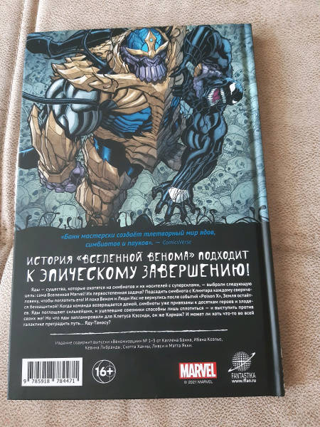 ОписаниеИстория "Вселенной Венома" подходит к эпическому завершению!Яды - существа, которые охотятся на симбиотов и их носителей с суперсилами, выбрали следующую цель: сама Вселенная Marvel! Их первостепенная задача? Подсадитьсимбиота с Клинтара каждому сверхчеловеку, чтобы поглотить его! И пока Веном и Люди Икс не вернулись после событий "Poison X", Земля остаётся беззащитной! Когда командавозвращается домой, симбиоты уже привязаны к десяткам героев и злодеев. Яды поглощают сильнейших, и уцелевшие союзники способны лишь сплотиться - и выступить противсвоих же! Но что яды запланировали для Клетуса Кэссиди, он же Карнаж? И может ли хоть что-то во всей Галактике преградить путь... Яду-Таносу?В сборник входит "Веномизация", № 1-5 от Каллена Банна, Ибана Коэльо, Кевина Либранды, Скотта Ханны, Ливси и Мэтта Якки.История "Вселенной Венома" подходит к эпическому завершению!Яды - существа, которые охотятся на симбиотов и их носителей с суперсилами, выбрали следующую цель: сама Вселенная Marvel! Их первостепенная задача? Подсадитьсимбиота с Клинтара каждому сверхчеловеку, чтобы поглотить его! И пока Веном и Люди Икс не вернулись после событий "Poison X", Земля остаётся беззащитной! Когда командавозвращается домой, симбиоты уже привязаны к десяткам героев и злодеев. Яды поглощают сильнейших, и уцелевшие союзники способны лишь сплотиться - и выступить противсвоих же! Но что яды запланировали для Клетуса Кэссиди, он же Карнаж? И может ли хоть что-то во всей Галактике преградить путь... Яду-Таносу?В сборник входит "Веномизация", № 1-5 от Каллена Банна, Ибана Коэльо, Кевина Либранды, Скотта Ханны, Ливси и Мэтта Якки.