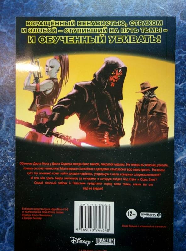 ОписаниеОбучение Дарта Мола у Дарта Сидиуса всегда было тайной, покрытой мраком. Но теперь вы наконец узнаете, почему он хочет отомстить! Мол впервые столкнётся с джедаями и выплеснет всю свою ярость. Но зачем ситх так отчаянно хочет найти джедая-падавана, угодившую в лапы коварных злоумышленников? И причём здесь банда охотников за головами, в которую входят Кэд Бэйн и Орра Синг? Самый опасный забрак в Галактике предстанет перед вами таким, каким вы его ещё не видели!В сборник входят выпуски "Дарт Мол" #1-5 от Каллена Банна, Люка Росса, Нолана Вударда, Криса Элиопулоса и Джорди Беллэйр.Обучение Дарта Мола у Дарта Сидиуса всегда было тайной, покрытой мраком. Но теперь вы наконец узнаете, почему он хочет отомстить! Мол впервые столкнётся с джедаями и выплеснет всю свою ярость. Но зачем ситх так отчаянно хочет найти джедая-падавана, угодившую в лапы коварных злоумышленников? И причём здесь банда охотников за головами, в которую входят Кэд Бэйн и Орра Синг? Самый опасный забрак в Галактике предстанет перед вами таким, каким вы его ещё не видели!В сборник входят выпуски "Дарт Мол" #1-5 от Каллена Банна, Люка Росса, Нолана Вударда, Криса Элиопулоса и Джорди Беллэйр.
