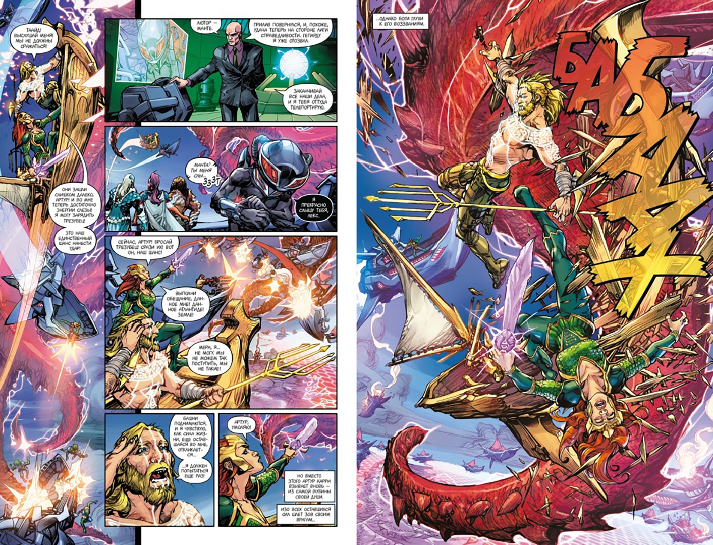 ОписаниеОбъединившись с богоподобным маньяком – Бэтменом, Который Смеется, криминальный гений Лекс Лютор продолжает собирать Легион Погибели, призвав под его знамена Черную Манту и Гепарду, смертных врагов Аквамена и Чудо-Женщины. Но над планетой тем временем нависла угроза пострашнее. Воскресли древние морские боги, именуемые Владыками Океанов. Они озлоблены на атлантов и амазонок и грозятся затопить Землю. Артур, Диана и остальные члены Лиги должны остановить и Легион, и Владык Океанов – иначе всплывшие на поверхность секреты утащат планету в пучину отчаяния.Объединившись с богоподобным маньяком – Бэтменом, Который Смеется, криминальный гений Лекс Лютор продолжает собирать Легион Погибели, призвав под его знамена Черную Манту и Гепарду, смертных врагов Аквамена и Чудо-Женщины. Но над планетой тем временем нависла угроза пострашнее. Воскресли древние морские боги, именуемые Владыками Океанов. Они озлоблены на атлантов и амазонок и грозятся затопить Землю. Артур, Диана и остальные члены Лиги должны остановить и Легион, и Владык Океанов – иначе всплывшие на поверхность секреты утащат планету в пучину отчаяния.