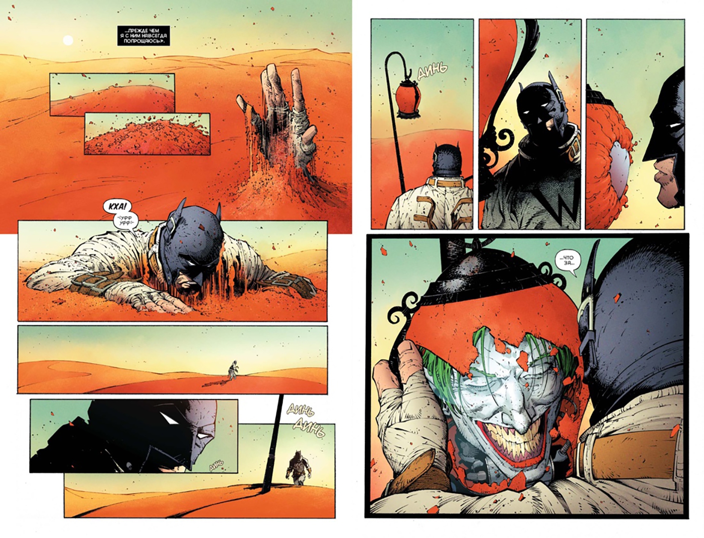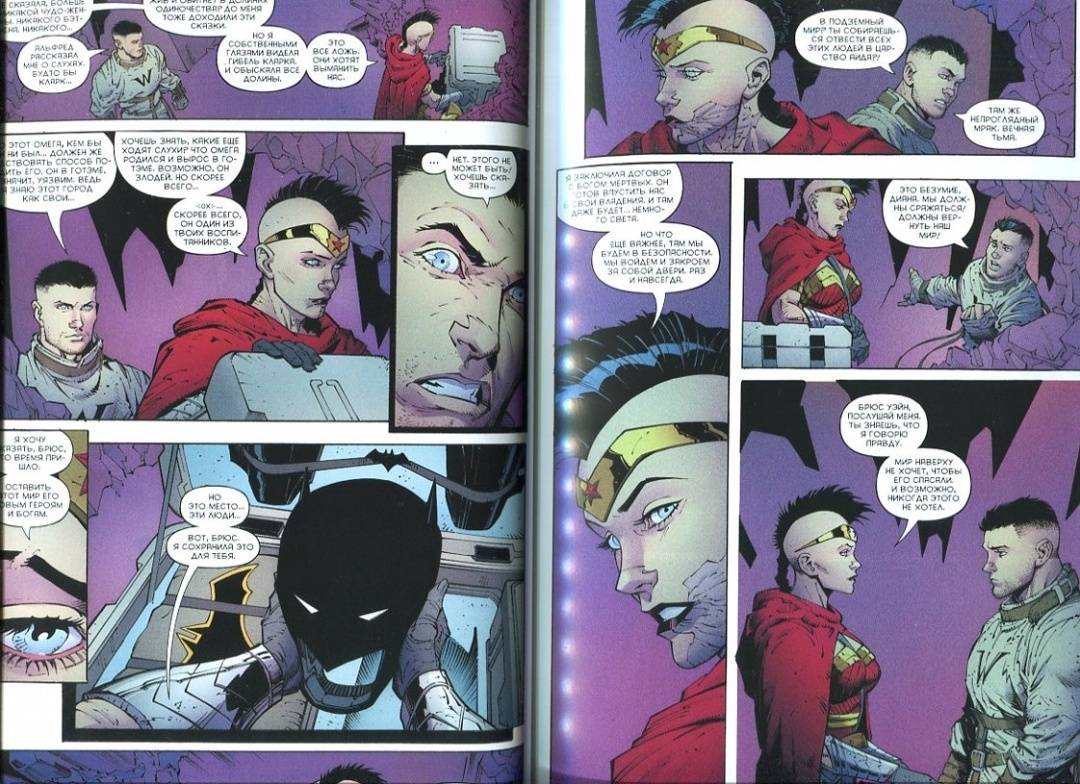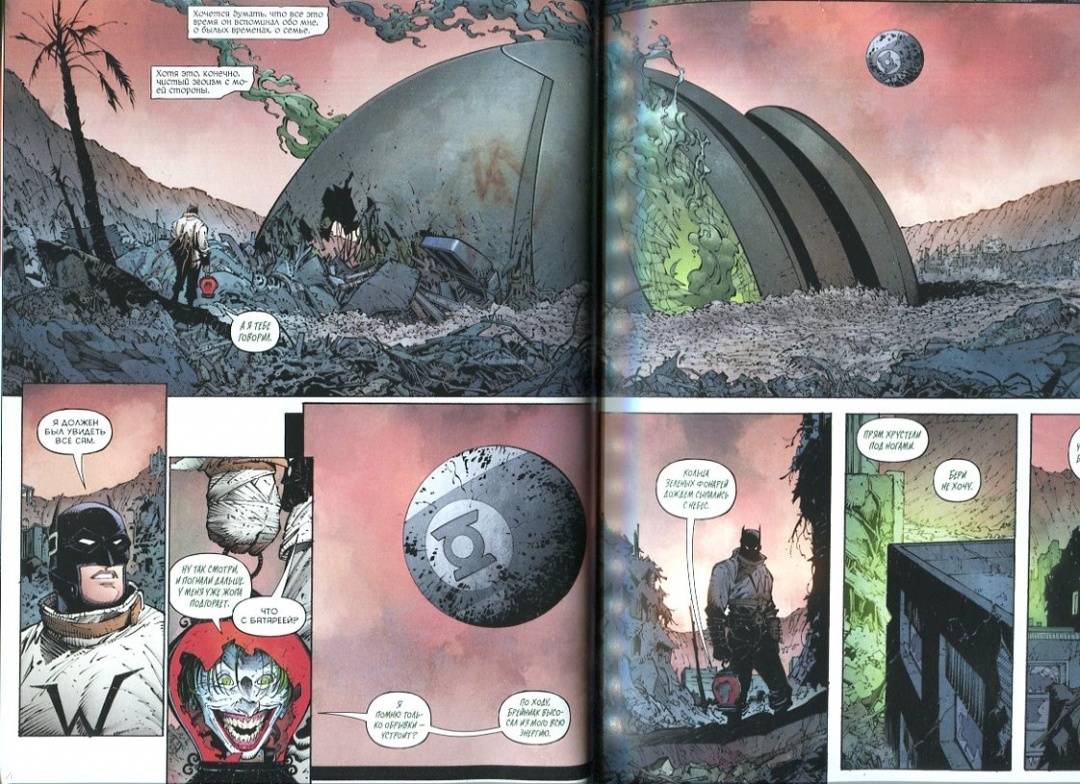 ОписаниеБрюс Уэйн приходит в себя в психиатрической лечебнице Аркхем. Он совершенно не помнит, как оказался в этом месте, и главное - пока не подозревает, что мир снаружи был уничтожен, а практически все супергерои погибли… Чтобы найти ответы на терзающие его вопросы и выяснить правду о случившемся, Бэтмену предстоит совершить долгое путешествие по руинам разрушенной цивилизации. Компанию герою составит весьма необычный попутчик - болтливая голова Джокера в стеклянной банке, а на пути повстречаются до неузнаваемости изменившиеся друзья и враги: от потерявшей надежду Чудо-Женщины до Лекса Лютора, боготворящего Супермена. Однако главная загадка, которую должен разгадать Темный Рыцарь - что же за темное зло возникло в его родном городе? Кто этот таинственный человек по прозвищу Омега, который правит в Готэме железной рукой? И как все происходящее связано с одним старым делом о мертвом мальчике в Преступном переулке?..Брюс Уэйн приходит в себя в психиатрической лечебнице Аркхем. Он совершенно не помнит, как оказался в этом месте, и главное - пока не подозревает, что мир снаружи был уничтожен, а практически все супергерои погибли… Чтобы найти ответы на терзающие его вопросы и выяснить правду о случившемся, Бэтмену предстоит совершить долгое путешествие по руинам разрушенной цивилизации. Компанию герою составит весьма необычный попутчик - болтливая голова Джокера в стеклянной банке, а на пути повстречаются до неузнаваемости изменившиеся друзья и враги: от потерявшей надежду Чудо-Женщины до Лекса Лютора, боготворящего Супермена. Однако главная загадка, которую должен разгадать Темный Рыцарь - что же за темное зло возникло в его родном городе? Кто этот таинственный человек по прозвищу Омега, который правит в Готэме железной рукой? И как все происходящее связано с одним старым делом о мертвом мальчике в Преступном переулке?..