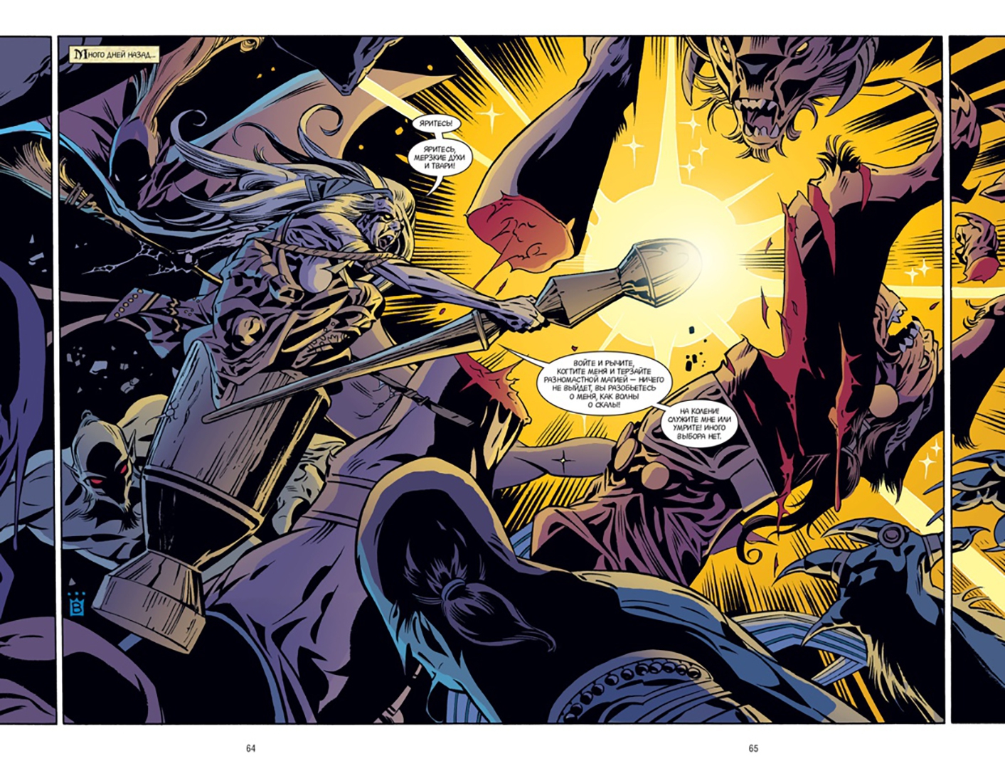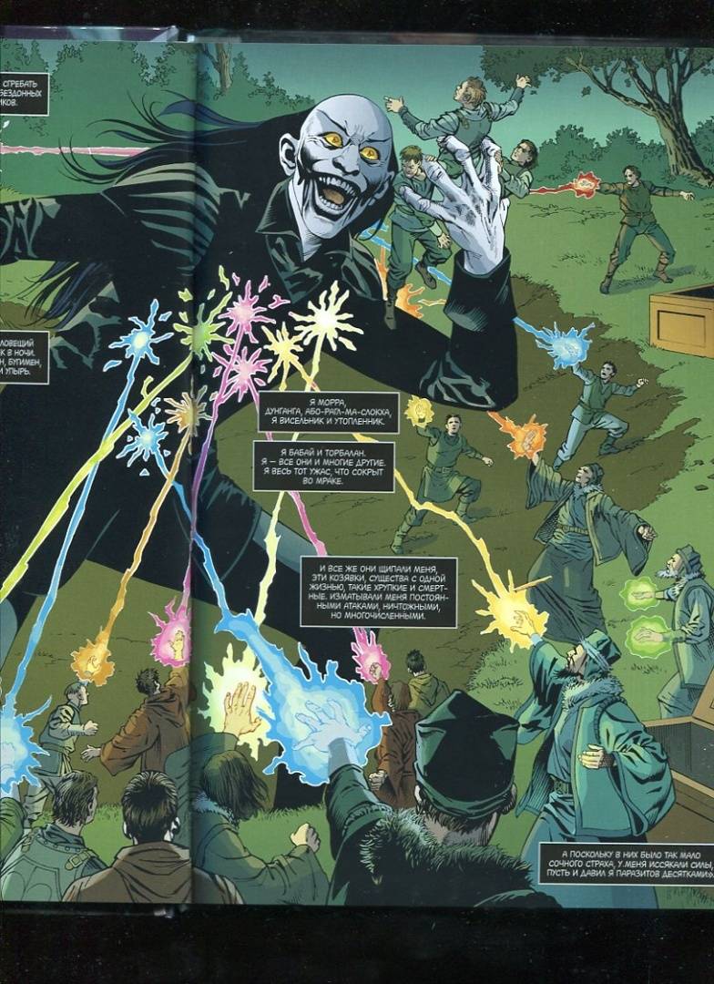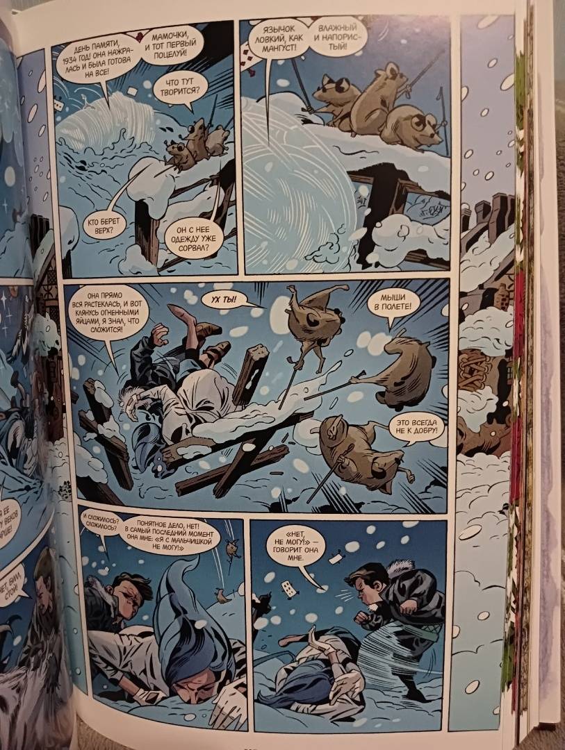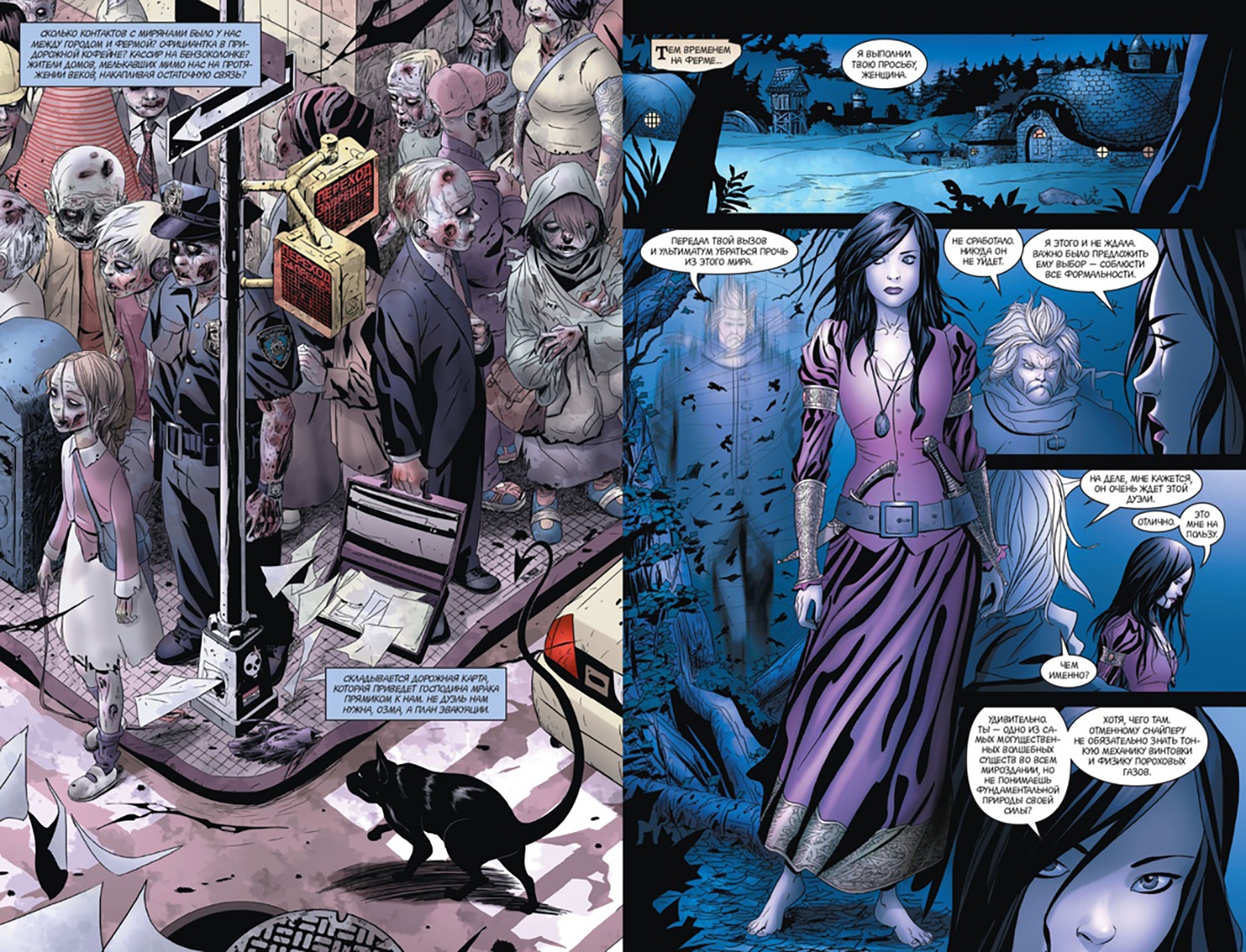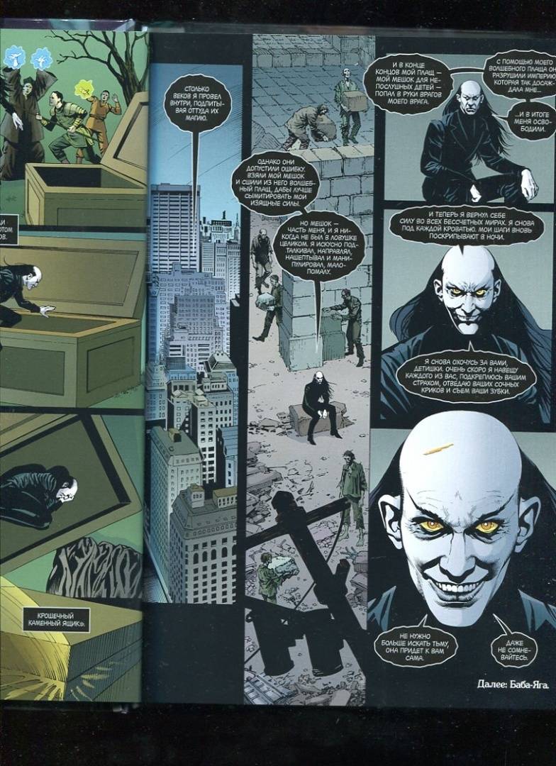 ОписаниеОднажды давным-давно… Представьте себе, что все наши самые любимые сказки оказались реальными людьми и поселились рядом с нами, сохранив все свои волшебные свойства. Как им удастся выжить в нашем обыкновенном, лишенном колдовства мире? "Сказки", великолепная вариация на тему всемирного фольклорного наследия, придуманная Биллом Уиллингхэмом, дает ответ на этот вопрос. К нам возвращаются Бела Снежка и Бигби Волк, Златовласка и Мальчик-Пастушок - возвращаются как изгнанники, которые живут, хитроумно замаскировавшись, в одном из районов Нью-Йорка под названием Сказкитаун. Они живут, влюбляются, сражаются и мечтают когда-нибудь вернуться домой. В одиннадцатой книге Бафкин, смиренная летучая обезьяна, оказывается заперт в рабочем кабинете с вырвавшейся на свободу Бабой Ягой, а фрау Тотенкиндер и прочие ведьмы с бывшего тринадцатого этажа готовятся дать бой Мистеру Мраку на развалинах Сказкитауна. И покатятся головы, и прольется кровь, и ничто уже никогда не будет прежним...СвернутьОднажды давным-давно… Представьте себе, что все наши самые любимые сказки оказались реальными людьми и поселились рядом с нами, сохранив все свои волшебные свойства. Как им удастся выжить в нашем обыкновенном, лишенном колдовства мире? "Сказки", великолепная вариация на тему всемирного фольклорного наследия, придуманная Биллом Уиллингхэмом, дает ответ на этот вопрос. К нам возвращаются Бела Снежка и Бигби Волк, Златовласка и Мальчик-Пастушок - возвращаются как изгнанники, которые живут, хитроумно замаскировавшись, в одном из районов Нью-Йорка под названием Сказкитаун. Они живут, влюбляются, сражаются и мечтают когда-нибудь вернуться домой. В одиннадцатой книге Бафкин, смиренная летучая обезьяна, оказывается заперт в рабочем кабинете с вырвавшейся на свободу Бабой Ягой, а фрау Тотенкиндер и прочие ведьмы с бывшего тринадцатого этажа готовятся дать бой Мистеру Мраку на развалинах Сказкитауна. И покатятся головы, и прольется кровь, и ничто уже никогда не будет прежним...СвернутьСвернуть