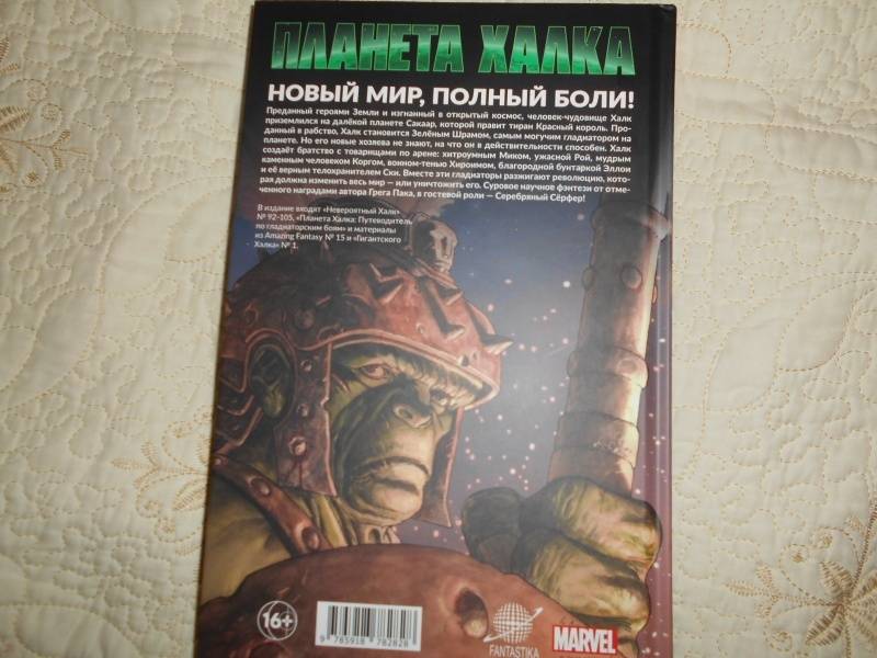 ОписаниеПреданный героями Земли и изгнанный в открытый космос, человек-чудовище Халк приземлился на далёкой планете Сакаар, которой правит тиран Красный король. Проданный в рабство, Халк становится Зелёным Шрамом, самым могучим гладиатором на планете. Но его новые хозяева не знают, на что он в действительности способен. Халк создаёт братство с товарищами по арене: хитроумным Миком, ужасной Рой, мудрым каменным человеком Коргом, воином-тенью Хироимом, благородной бунтаркой Эллои и её верным телохранителем Ски. Вместе эти гладиаторы разжигают революцию, которая должна изменить весь мир - или уничтожить его. Суровое научное фэнтези от отмеченного наградами автора Грега Пака, в гостевой роли - Серебряный Сёрфер!В издание входят "Невероятный Халк" № 92-105, "Планета Халка: Путеводитель по гладиаторским боям" и материалы из Amazing Fantasy № 15 и "Гигантского Халка" № 1.Преданный героями Земли и изгнанный в открытый космос, человек-чудовище Халк приземлился на далёкой планете Сакаар, которой правит тиран Красный король. Проданный в рабство, Халк становится Зелёным Шрамом, самым могучим гладиатором на планете. Но его новые хозяева не знают, на что он в действительности способен. Халк создаёт братство с товарищами по арене: хитроумным Миком, ужасной Рой, мудрым каменным человеком Коргом, воином-тенью Хироимом, благородной бунтаркой Эллои и её верным телохранителем Ски. Вместе эти гладиаторы разжигают революцию, которая должна изменить весь мир - или уничтожить его. Суровое научное фэнтези от отмеченного наградами автора Грега Пака, в гостевой роли - Серебряный Сёрфер!В издание входят "Невероятный Халк" № 92-105, "Планета Халка: Путеводитель по гладиаторским боям" и материалы из Amazing Fantasy № 15 и "Гигантского Халка" № 1.