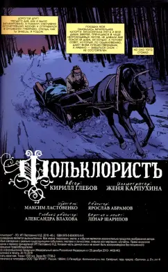 ОписаниеСюжет графического романа "Фольклорист" разворачивается в середине 19 века. В основу комикса, выполненного в лучших традициях Гоголя и Толстого, легли верования, предания и суеверия народов, населявших Российскую Империю того времени. "Фольклорист" - достойный представитель русского готического романа, который не оставит читателя равнодушным.Сюжет графического романа "Фольклорист" разворачивается в середине 19 века. В основу комикса, выполненного в лучших традициях Гоголя и Толстого, легли верования, предания и суеверия народов, населявших Российскую Империю того времени. "Фольклорист" - достойный представитель русского готического романа, который не оставит читателя равнодушным.