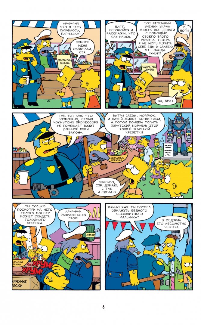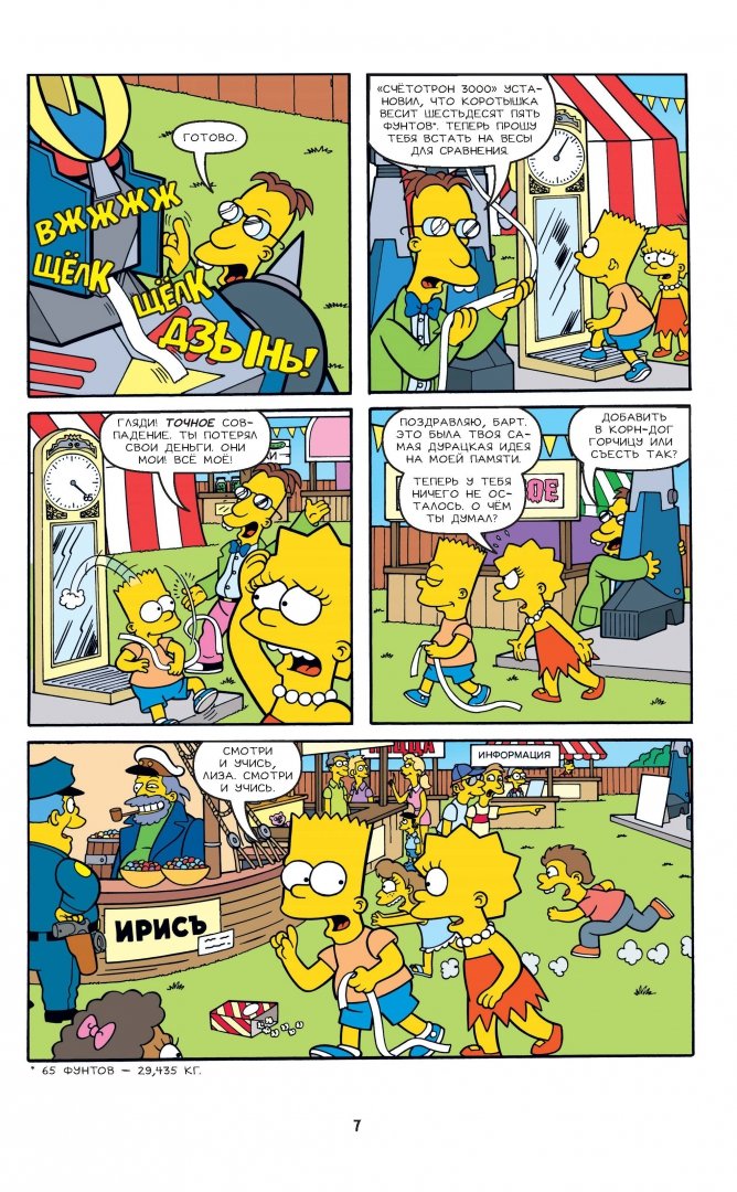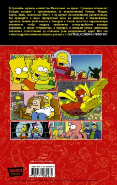 ОписаниеВстречайте шумное семейство Симпсонов на ярких страницах комиксов! Каждая история о приключениях (и злоключениях) Гомера, Мардж, Барта, Лизы, маленькой Мэгги и их друзей по-настоящему увлекательна. Вы проведёте с ними прекрасный день на ярмарке в Спрингфилде, одолеете летний зной вместе с Гомером и Лизой, посетите параллельную вселенную, чтобы увидеть необычную супергеройскую команду Бартмена.А также отправитесь в будущее, в котором семья Симпсонов оказалась ответственна за спасение (или разрушение?) мира! Все эти и многие другие комиксы собраны для вас в этой грандиозной антологии!Встречайте шумное семейство Симпсонов на ярких страницах комиксов! Каждая история о приключениях (и злоключениях) Гомера, Мардж, Барта, Лизы, маленькой Мэгги и их друзей по-настоящему увлекательна. Вы проведёте с ними прекрасный день на ярмарке в Спрингфилде, одолеете летний зной вместе с Гомером и Лизой, посетите параллельную вселенную, чтобы увидеть необычную супергеройскую команду Бартмена.А также отправитесь в будущее, в котором семья Симпсонов оказалась ответственна за спасение (или разрушение?) мира! Все эти и многие другие комиксы собраны для вас в этой грандиозной антологии!