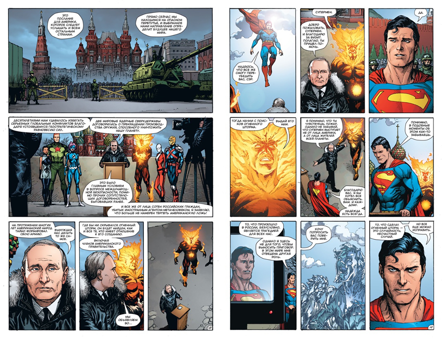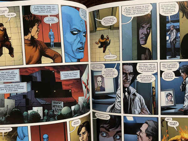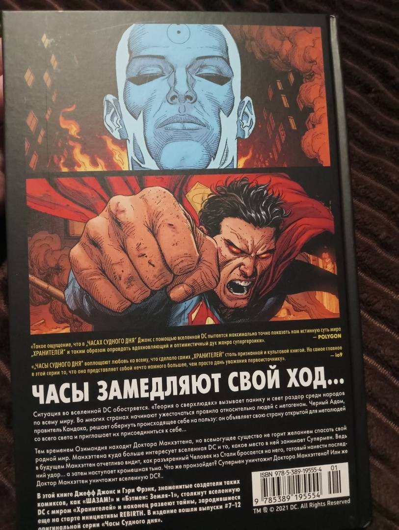 Тем временем Озимандия находит Доктора Манхэттена, но всемогущее существо не горит желанием спасать свой родной мир. Манхэттена куда больше интересует вселенная DC и то, какое место в ней занимает Супермен. Ведь в будущем Манхэттен отчетливо видит, как разъяренный Человек из Стали бросается на него, готовый нанести последний удар… а затем наступает кромешная тьма. Что же произойдет? Супермен уничтожит Доктора Манхэттена? Или же Доктор Манхэттен уничтожит вселенную DC?.. -