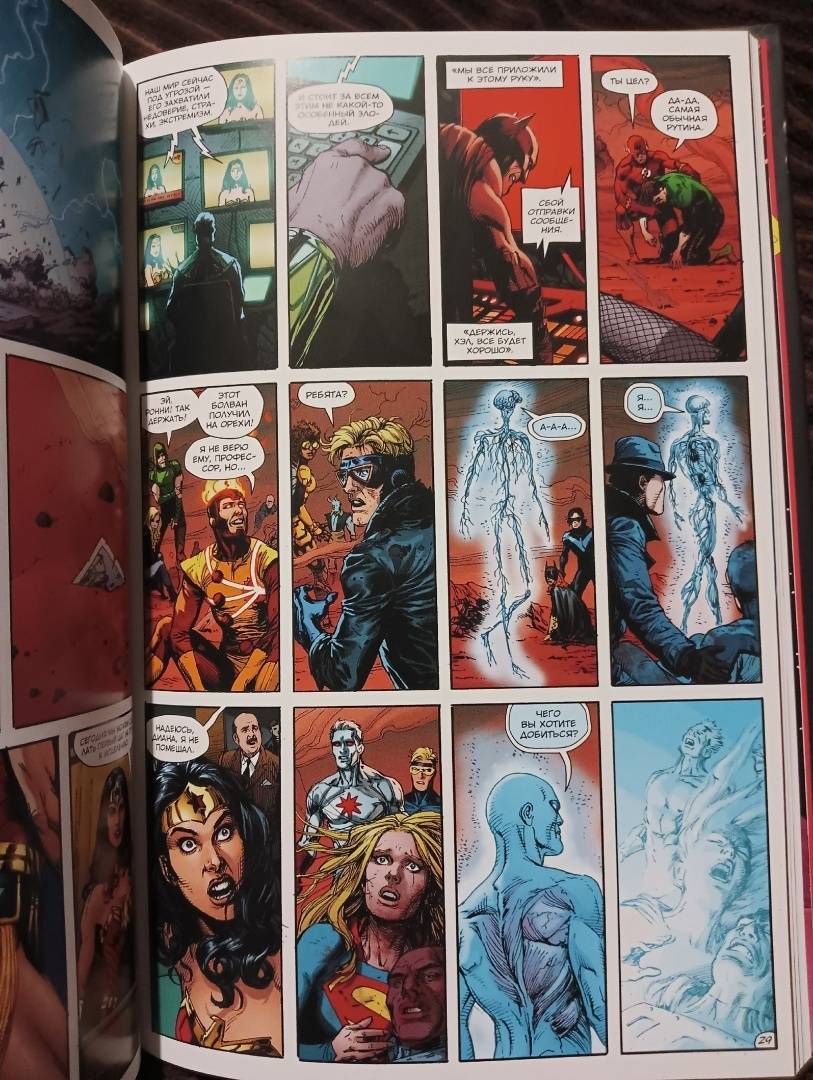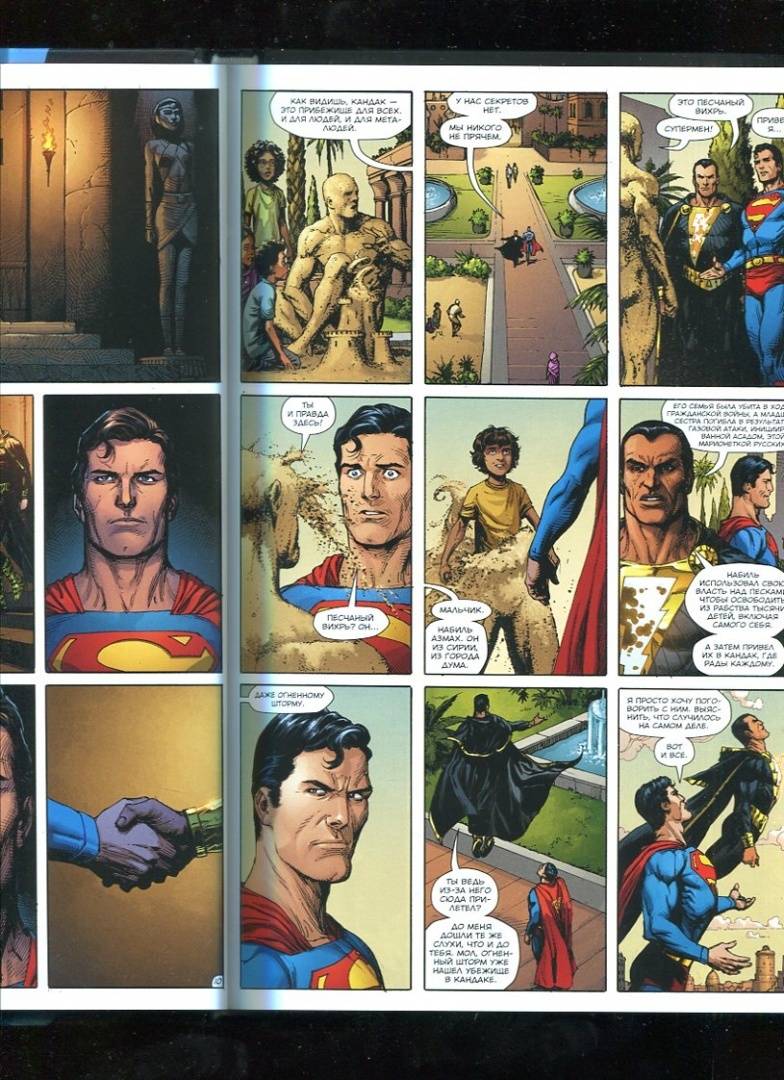 Тем временем Озимандия находит Доктора Манхэттена, но всемогущее существо не горит желанием спасать свой родной мир. Манхэттена куда больше интересует вселенная DC и то, какое место в ней занимает Супермен. Ведь в будущем Манхэттен отчетливо видит, как разъяренный Человек из Стали бросается на него, готовый нанести последний удар… а затем наступает кромешная тьма. Что же произойдет? Супермен уничтожит Доктора Манхэттена? Или же Доктор Манхэттен уничтожит вселенную DC?..Ситуация во вселенной DC обостряется. «Теория о сверхлюдях» вызывает панику и сеет раздор среди народов по всему миру. Во многих странах начинают ужесточаться правила относительно людей с метагеном. Черный Адам, правитель Кандака, решает обернуть происходящее себе на пользу: он объявляет свою страну открытой для металюдей со всего света и предлагает им присоединиться к себе...