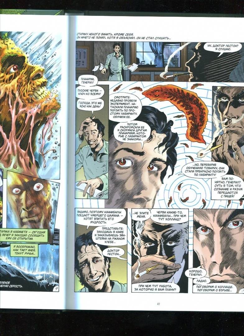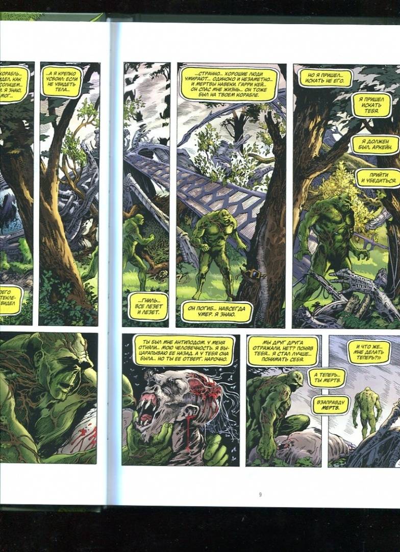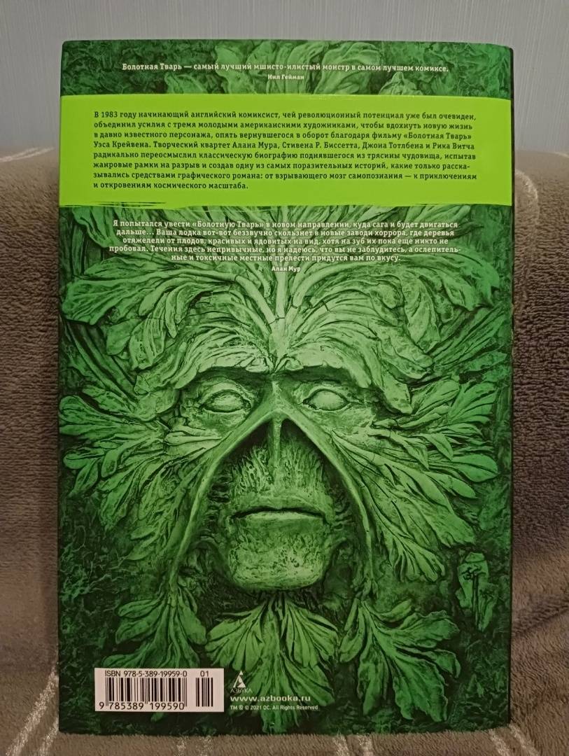 ОписаниеВ 1983 году начинающий английский комиксист, чей революционный потенциал уже был очевиден, объединил усилия с тремя молодыми американскими художниками, чтобы вдохнуть новую жизнь в давно известного персонажа, опять вернувшегося в оборот благодаря фильму «Болотная Тварь» Уэса Крейвена. Творческий квартет Алана Мура, Стивена Р. Биссетта, Джона Тотлбена и Рика Витча радикально переосмыслил классическую биографию поднявшегося из трясины чудовища, испытав жанровые рамки на разрыв и создав одну из самых поразительных историй, какие только рассказывались средствами графического романа: от взрывающего мозг самопознания — к приключениям и откровениям космического масштаба.В 1983 году начинающий английский комиксист, чей революционный потенциал уже был очевиден, объединил усилия с тремя молодыми американскими художниками, чтобы вдохнуть новую жизнь в давно известного персонажа, опять вернувшегося в оборот благодаря фильму «Болотная Тварь» Уэса Крейвена. Творческий квартет Алана Мура, Стивена Р. Биссетта, Джона Тотлбена и Рика Витча радикально переосмыслил классическую биографию поднявшегося из трясины чудовища, испытав жанровые рамки на разрыв и создав одну из самых поразительных историй, какие только рассказывались средствами графического романа: от взрывающего мозг самопознания — к приключениям и откровениям космического масштаба.