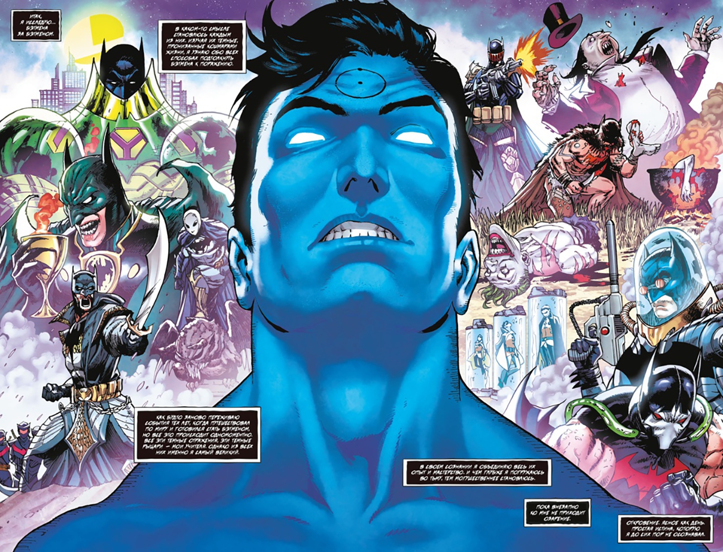 ОписаниеМир окутан ужасом и тьмой: отныне он находится во власти Бэтмена, Который Смеется и матери самой Мультивселенной – Перпетуи. И пока остатки человечества пытаются выжить на изуродованной до неузнаваемости Земле, которую наводнили полчища злобных Темных Рыцарей, Чудо-Женщина, Бэтмен и Супермен вынуждены бороться за свое существование. У героев появляется рискованный план: вернуться к событиям уже минувших Кризисов и использовать их энергию, чтобы создать первый в своем роде Анти-Кризис – событие, которое восстановит Мультивселенную, вновь наполнив ее светом и надеждой. Вот только у Бэтмена, Который Смеется есть козырь в рукаве – и он пускает его в ход…Мир окутан ужасом и тьмой: отныне он находится во власти Бэтмена, Который Смеется и матери самой Мультивселенной – Перпетуи. И пока остатки человечества пытаются выжить на изуродованной до неузнаваемости Земле, которую наводнили полчища злобных Темных Рыцарей, Чудо-Женщина, Бэтмен и Супермен вынуждены бороться за свое существование. У героев появляется рискованный план: вернуться к событиям уже минувших Кризисов и использовать их энергию, чтобы создать первый в своем роде Анти-Кризис – событие, которое восстановит Мультивселенную, вновь наполнив ее светом и надеждой. Вот только у Бэтмена, Который Смеется есть козырь в рукаве – и он пускает его в ход…