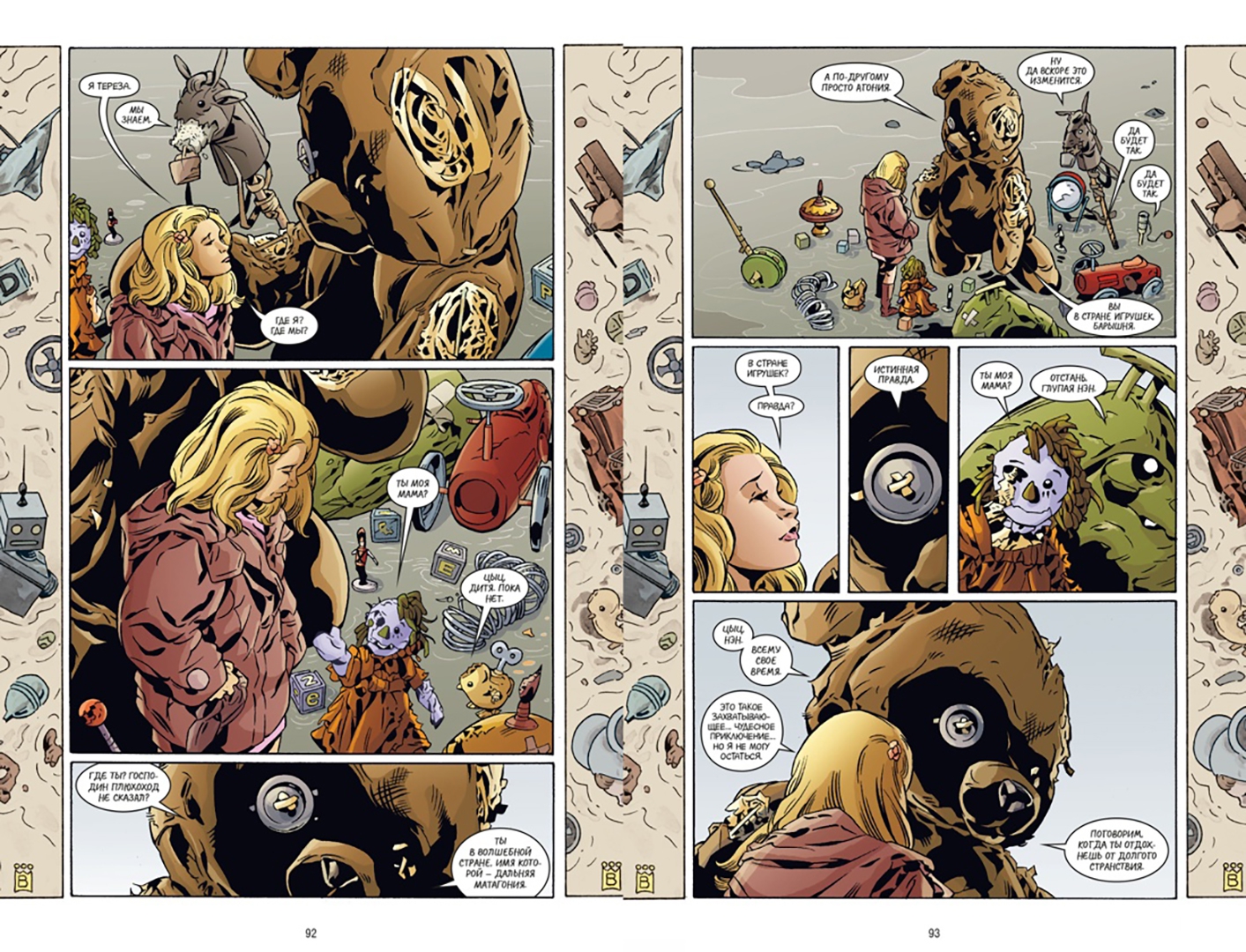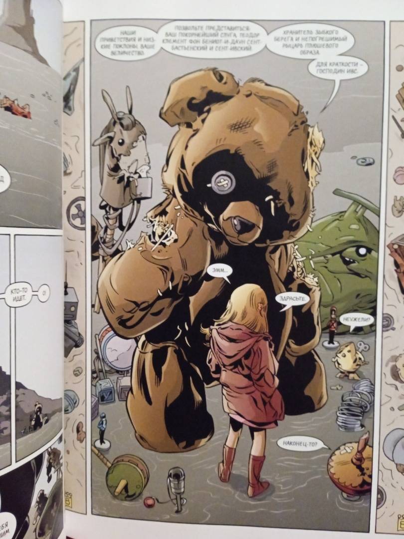 Описание"Сказки", великолепная вариация на тему всемирного фольклорного наследия, придуманная Биллом Уиллингхэмом, дают ответ на этот вопрос. К нам возвращаются Бела Снежка и Бигби Волк, Златовласка и Мальчик-Пастушок - возвращаются как изгнанники, которые живут, хитроумно замаскировавшись, в одном из районов Нью-Йорка под названием Сказкитаун. Они живут, влюбляются, сражаются и мечтают когда-нибудь вернуться домой. В тринадцатой книге храбрый Бафкин продолжает революцию в стране Оз, кое-кто из волчат оказывается в не столь радостной, как хотелось бы, Стране игрушек, Бигби играет с самой судьбой, а на голову Снежки сваливаются самые крупные неприятности со времен бегства из Родных Земель. Эти комиксы, признанные и критиками, и читателями современной классикой жанра, впервые выходят в виде роскошных книг в твердом переплете. "Сказки: Издание делюкс, книга тринадцатая" включает рассказ о непростом взрослении "Волчата в Стране игрушек", феерические саги "Революция в стране Оз" и "Бела Снежка" (выпуски #114-129), а также предисловие Лорен Бьюкес (автора знаменитых романов "Зоосити", "Сияющие", "Земля матерей") и галерею набросков художника серии Марка Бэкингхэма.Свернуть"Сказки", великолепная вариация на тему всемирного фольклорного наследия, придуманная Биллом Уиллингхэмом, дают ответ на этот вопрос. К нам возвращаются Бела Снежка и Бигби Волк, Златовласка и Мальчик-Пастушок - возвращаются как изгнанники, которые живут, хитроумно замаскировавшись, в одном из районов Нью-Йорка под названием Сказкитаун. Они живут, влюбляются, сражаются и мечтают когда-нибудь вернуться домой. В тринадцатой книге храбрый Бафкин продолжает революцию в стране Оз, кое-кто из волчат оказывается в не столь радостной, как хотелось бы, Стране игрушек, Бигби играет с самой судьбой, а на голову Снежки сваливаются самые крупные неприятности со времен бегства из Родных Земель. Эти комиксы, признанные и критиками, и читателями современной классикой жанра, впервые выходят в виде роскошных книг в твердом переплете. "Сказки: Издание делюкс, книга тринадцатая" включает рассказ о непростом взрослении "Волчата в Стране игрушек", феерические саги "Революция в стране Оз" и "Бела Снежка" (выпуски #114-129), а также предисловие Лорен Бьюкес (автора знаменитых романов "Зоосити", "Сияющие", "Земля матерей") и галерею набросков художника серии Марка Бэкингхэма.СвернутьСвернуть