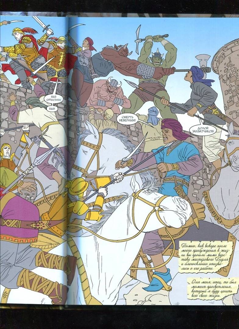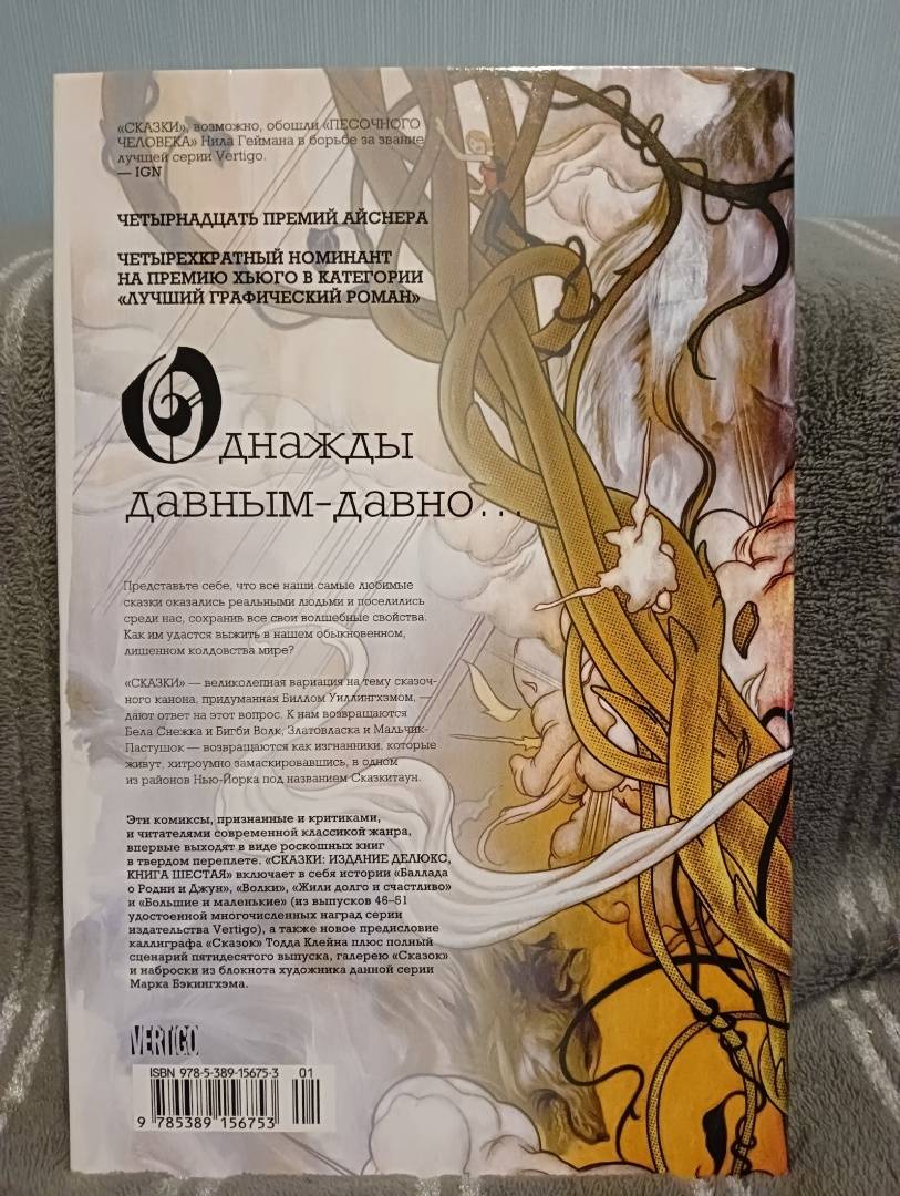 ОписаниеПредставьте себе, что все наши самые любимые сказки оказались реальными людьми и поселились среди нас, сохранив все свои волшебные свойства. Как им удастся выжить в нашем обыкновенном, лишенном колдовства мире? "Сказки" - великолепная вариация на тему сказочного канона, придуманная Биллом Уиллингхэмом, дает ответ на этот вопрос. К нам возвращаются Бела Снежка и Бигби Волк, Златовласка и Мальчик-Пастушок - возвращаются как изгнанники, которые живут, хитроумно замаскировавшись, в одном из районов Нью-Йорка под названием Сказкитаун. Эти комиксы, признанные и критиками, и читателями современной классикой жанра, впервые выходят в виде роскошных книг в твердом переплете. "Сказки: Издание делюкс, книга шестая" включает в себя классические истории "Джек с "Джекфильма"", "Родные Земли" и "Тысяча и одна ночь (и день)" (из выпусков 34-45 удостоенной многочисленных наград серии издательства Vertigo), а также новое предисловие писателя и соавтора "Джека-из-Сказок" Мэтью Стурджеса, плюс наброски из блокнота художника "Сказок" Марка Бэкингхэма.СвернутьПредставьте себе, что все наши самые любимые сказки оказались реальными людьми и поселились среди нас, сохранив все свои волшебные свойства. Как им удастся выжить в нашем обыкновенном, лишенном колдовства мире? "Сказки" - великолепная вариация на тему сказочного канона, придуманная Биллом Уиллингхэмом, дает ответ на этот вопрос. К нам возвращаются Бела Снежка и Бигби Волк, Златовласка и Мальчик-Пастушок - возвращаются как изгнанники, которые живут, хитроумно замаскировавшись, в одном из районов Нью-Йорка под названием Сказкитаун. Эти комиксы, признанные и критиками, и читателями современной классикой жанра, впервые выходят в виде роскошных книг в твердом переплете. "Сказки: Издание делюкс, книга шестая" включает в себя классические истории "Джек с "Джекфильма"", "Родные Земли" и "Тысяча и одна ночь (и день)" (из выпусков 34-45 удостоенной многочисленных наград серии издательства Vertigo), а также новое предисловие писателя и соавтора "Джека-из-Сказок" Мэтью Стурджеса, плюс наброски из блокнота художника "Сказок" Марка Бэкингхэма.СвернутьСвернуть