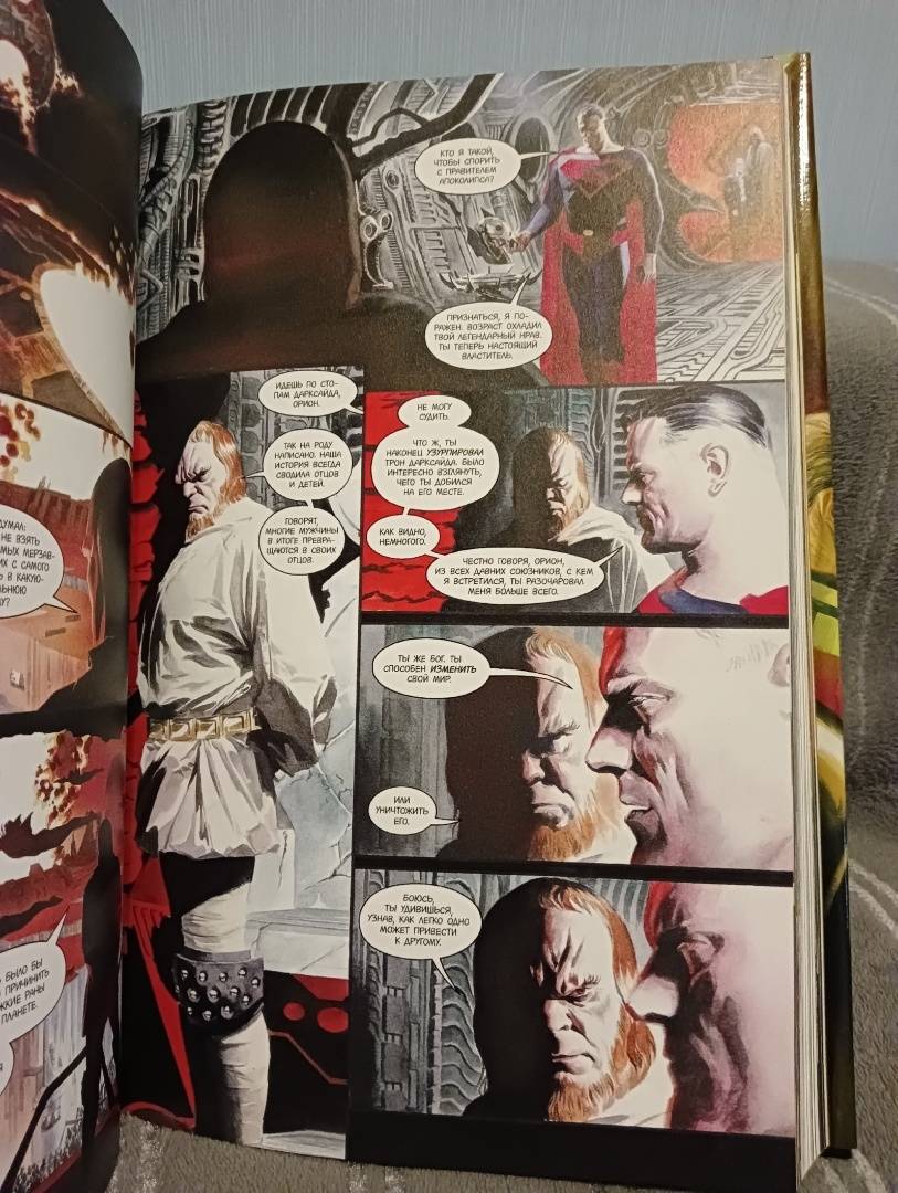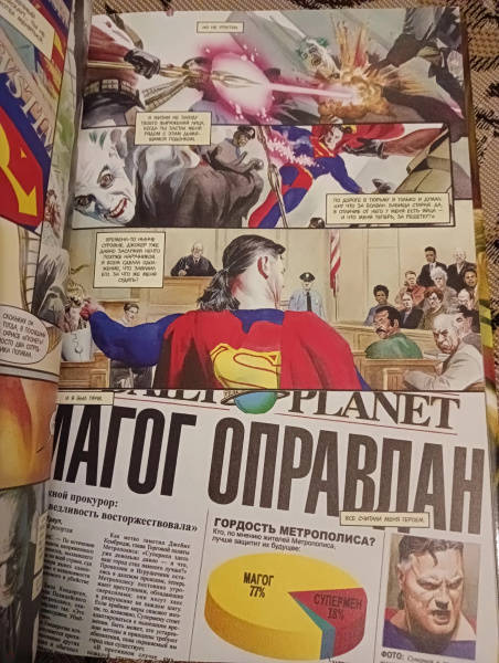 Описание"Царство Небесное" - легендарное, впечатляющее произведение, не потерявшее своей значимости с 1996 года, когда Марк Уэйд и Алекс Росс познакомили мир с этим шедевром комикс-индустрии. Впервые на русском языке! Супергерои вездесущи, но героизм встречается все реже… Десятилетиями решая самые острые проблемы Земли, члены Лиги Справедливости в конце концов отошли в тень. Однако пришедшее им на смену новое поколение борцов с преступностью вселяет в людей больше ужаса, нежели уверенности в завтрашнем дне. И снова будущее планеты оказывается под угрозой. Тогда Супермен, Чудо-Женщина и Бэтмен должны снова взяться за дело, чтобы в последней битве отстоять истину и справедливость! Настоящее издание включает выпуски 1-4 и более сотни страниц набросков, эскизов, и разнообразных рабочих материалов, отражающих процесс создания одного из культовых комиксов DC."Царство Небесное" - легендарное, впечатляющее произведение, не потерявшее своей значимости с 1996 года, когда Марк Уэйд и Алекс Росс познакомили мир с этим шедевром комикс-индустрии. Впервые на русском языке! Супергерои вездесущи, но героизм встречается все реже… Десятилетиями решая самые острые проблемы Земли, члены Лиги Справедливости в конце концов отошли в тень. Однако пришедшее им на смену новое поколение борцов с преступностью вселяет в людей больше ужаса, нежели уверенности в завтрашнем дне. И снова будущее планеты оказывается под угрозой. Тогда Супермен, Чудо-Женщина и Бэтмен должны снова взяться за дело, чтобы в последней битве отстоять истину и справедливость! Настоящее издание включает выпуски 1-4 и более сотни страниц набросков, эскизов, и разнообразных рабочих материалов, отражающих процесс создания одного из культовых комиксов DC.
