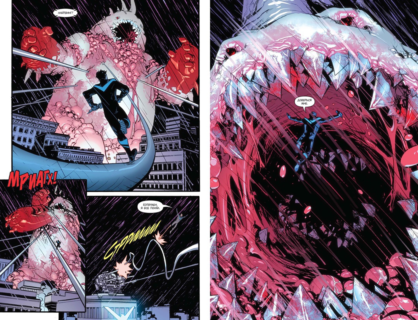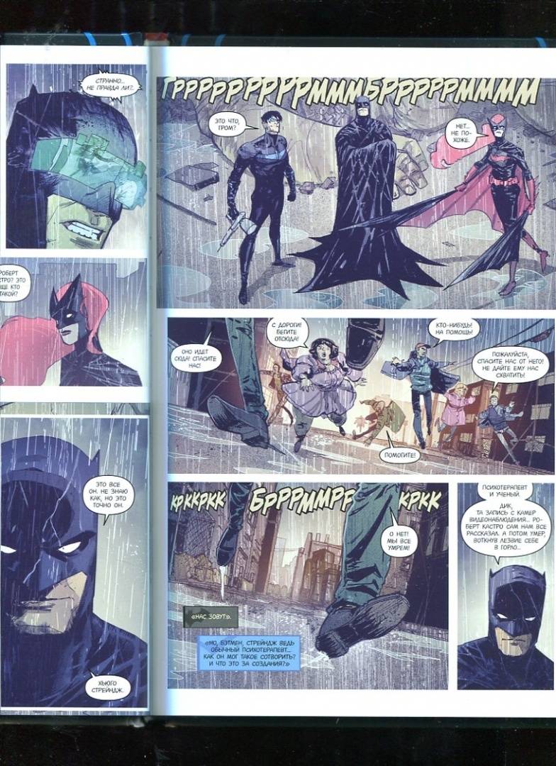 ОписаниеОсторожно! Здесь могут водиться монстры! Метеосводки не радуют жителей Готэма - на город надвигается буря, и некоторые его районы вот-вот окажутся под водой. Полиция с помощью плащеносцев начинает масштабную эвакуацию. Никто из героев даже не подозревает, что капризы погоды - это не самое страшное, с чем им доведется столкнуться этой ночью. Сегодня Темному Рыцарю и его команде придется сразиться с уродливыми гигантами, которые напали на Готэм и разрушают все на своем пути, с порождениями безумного гения, преследующего неведомые цели. И на этот раз угроза нависла не только над жителями города, но и над теми, кто занимается их спасением… "Бэтмен: Ночь людей-монстров" - первый кроссовер в истории DC Rebirth, созданный командой в лице Стива Орландо ("Midnighter"), Тома Кинга ("Batman"), Тима Сили ("Batman Eternal"), Джеймса Тайниона IV ("Detective Comics"), Райли Россмо ("Constantine: The Hellblazer"), Роже Антонио ("Batgirl and the Birds of Prey") и Энди Макдональда ("The New 52: Future's End"). Эта грандиозная история ужасов включает выпуски: "Бэтмен" #7-8, "Найтвинг" #5-6 и "Detective Comics" #941-942.СвернутьОсторожно! Здесь могут водиться монстры! Метеосводки не радуют жителей Готэма - на город надвигается буря, и некоторые его районы вот-вот окажутся под водой. Полиция с помощью плащеносцев начинает масштабную эвакуацию. Никто из героев даже не подозревает, что капризы погоды - это не самое страшное, с чем им доведется столкнуться этой ночью. Сегодня Темному Рыцарю и его команде придется сразиться с уродливыми гигантами, которые напали на Готэм и разрушают все на своем пути, с порождениями безумного гения, преследующего неведомые цели. И на этот раз угроза нависла не только над жителями города, но и над теми, кто занимается их спасением… "Бэтмен: Ночь людей-монстров" - первый кроссовер в истории DC Rebirth, созданный командой в лице Стива Орландо ("Midnighter"), Тома Кинга ("Batman"), Тима Сили ("Batman Eternal"), Джеймса Тайниона IV ("Detective Comics"), Райли Россмо ("Constantine: The Hellblazer"), Роже Антонио ("Batgirl and the Birds of Prey") и Энди Макдональда ("The New 52: Future's End"). Эта грандиозная история ужасов включает выпуски: "Бэтмен" #7-8, "Найтвинг" #5-6 и "Detective Comics" #941-942.СвернутьСвернуть