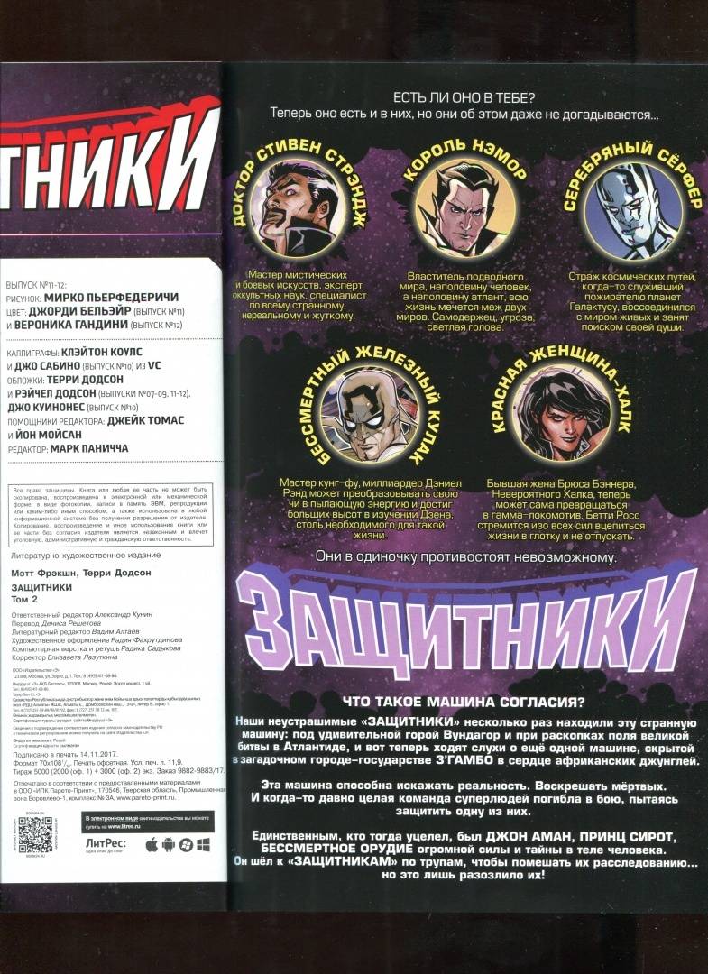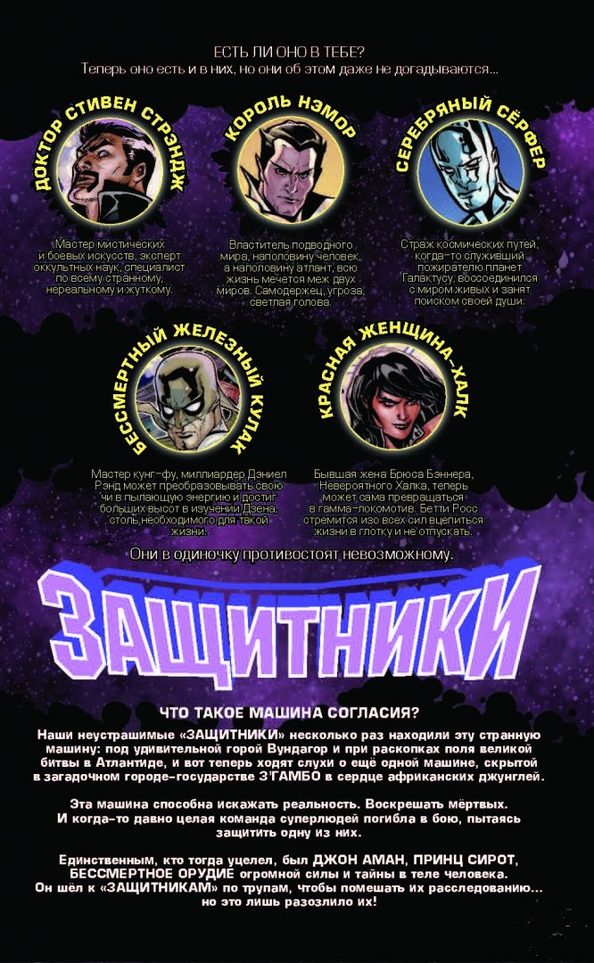ОписаниеДоктор Стрэндж и его команда направляются в Ваканду, чтобы заручиться помощью Черной Пантеры в поисках Бессмертного оружия Джона Амана, Князя сирот. Но после того, как между Вакандой и таинственным государством З'Гамбо начинается война, Машина согласия отправляет "Защитников" в путешествие по времени и пространству! Все погибли! Всё мертво! "Защитникам", потерявшим свой дом, предстоит спасти прошлое, настоящее и будущее! Но каким образом?Доктор Стрэндж и его команда направляются в Ваканду, чтобы заручиться помощью Черной Пантеры в поисках Бессмертного оружия Джона Амана, Князя сирот. Но после того, как между Вакандой и таинственным государством З'Гамбо начинается война, Машина согласия отправляет "Защитников" в путешествие по времени и пространству! Все погибли! Всё мертво! "Защитникам", потерявшим свой дом, предстоит спасти прошлое, настоящее и будущее! Но каким образом?