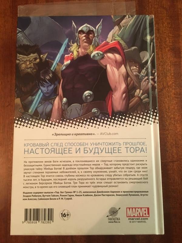 ОписаниеНа протяжении веков боги исчезали, а поклонявшиеся им смертные становились одинокими и беззащитными. Единственная надежда опустошённых миров - Тор, которому предстоит раскрыть ужасную тайну Убийцы Богов! В далёком прошлом Тор обнаруживает забытую пещеру, где эхом звучат стенания терзаемых небожителей, и, к своему изумлению, узнаёт, что он сам среди них! В настоящем Тор мчится сквозь глубины космоса по кровавому следу убитых собратьев. А спустя тысячи лет, в будущем, последний король разрушенного Асгарда отправляется на решающий бой с легионом берсерков Убийцы Богов. Три Тора из трёх эпох спешат остановить смертоносного монстра, в то время как его зловещий план принимает чудовищный размах!На протяжении веков боги исчезали, а поклонявшиеся им смертные становились одинокими и беззащитными. Единственная надежда опустошённых миров - Тор, которому предстоит раскрыть ужасную тайну Убийцы Богов! В далёком прошлом Тор обнаруживает забытую пещеру, где эхом звучат стенания терзаемых небожителей, и, к своему изумлению, узнаёт, что он сам среди них! В настоящем Тор мчится сквозь глубины космоса по кровавому следу убитых собратьев. А спустя тысячи лет, в будущем, последний король разрушенного Асгарда отправляется на решающий бой с легионом берсерков Убийцы Богов. Три Тора из трёх эпох спешат остановить смертоносного монстра, в то время как его зловещий план принимает чудовищный размах!