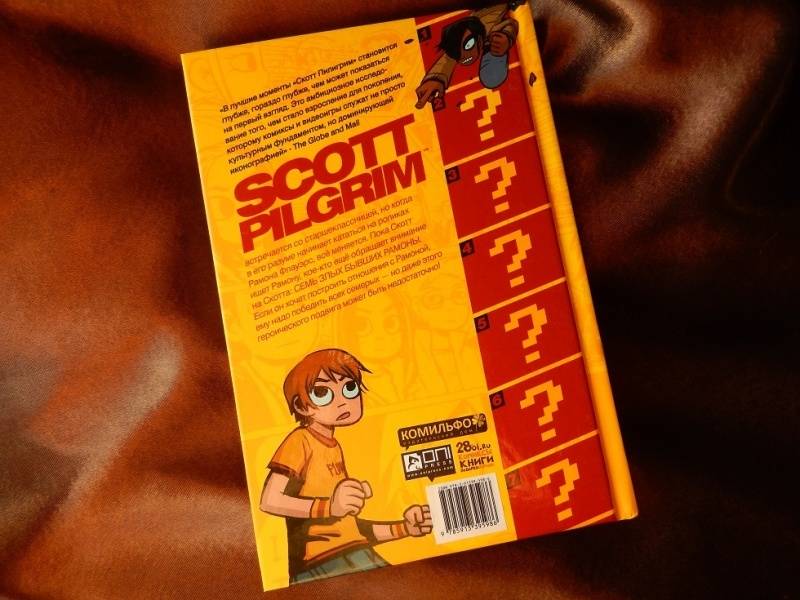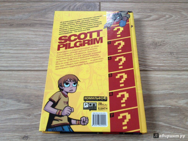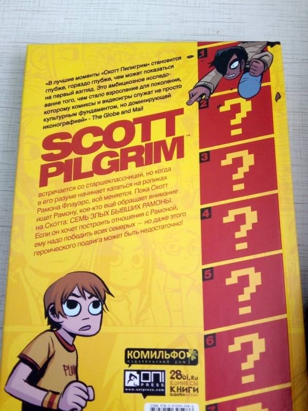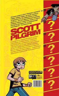 ОписаниеПриключения знаменитого Скотта Пилигрима теперь в цвете!Жизнь Скотта Пилигрима прекрасна. Ему 23 года, он играет в группе, "временно без работы" и встречается с прелестной старшеклассницей. Всё было отлично, пока сквозь его сны не начала разъезжать на роликах мозгоразрывающе модная девчонка-курьер по имени Рамона Флауэрс. Но путь к сердцу Рамоны не усеян розовыми лепестками: на пути у Скотта стоят её семеро злых бывших. Сумеет ли Скотт разделаться с плохими ребятами и достичь счастья, не поставив всю свою маленькую прекрасную жизнь на уши?В книге около тридцати страниц дополнений об истории создания комикса, написанных самим Брайаном Ли О'Мэлли, а так же примечания, которые окончательно отвечают на все вопросы и полностью устраняют остатки недопонимания между автором и читателем.Приключения знаменитого Скотта Пилигрима теперь в цвете!Жизнь Скотта Пилигрима прекрасна. Ему 23 года, он играет в группе, "временно без работы" и встречается с прелестной старшеклассницей. Всё было отлично, пока сквозь его сны не начала разъезжать на роликах мозгоразрывающе модная девчонка-курьер по имени Рамона Флауэрс. Но путь к сердцу Рамоны не усеян розовыми лепестками: на пути у Скотта стоят её семеро злых бывших. Сумеет ли Скотт разделаться с плохими ребятами и достичь счастья, не поставив всю свою маленькую прекрасную жизнь на уши?В книге около тридцати страниц дополнений об истории создания комикса, написанных самим Брайаном Ли О'Мэлли, а так же примечания, которые окончательно отвечают на все вопросы и полностью устраняют остатки недопонимания между автором и читателем.